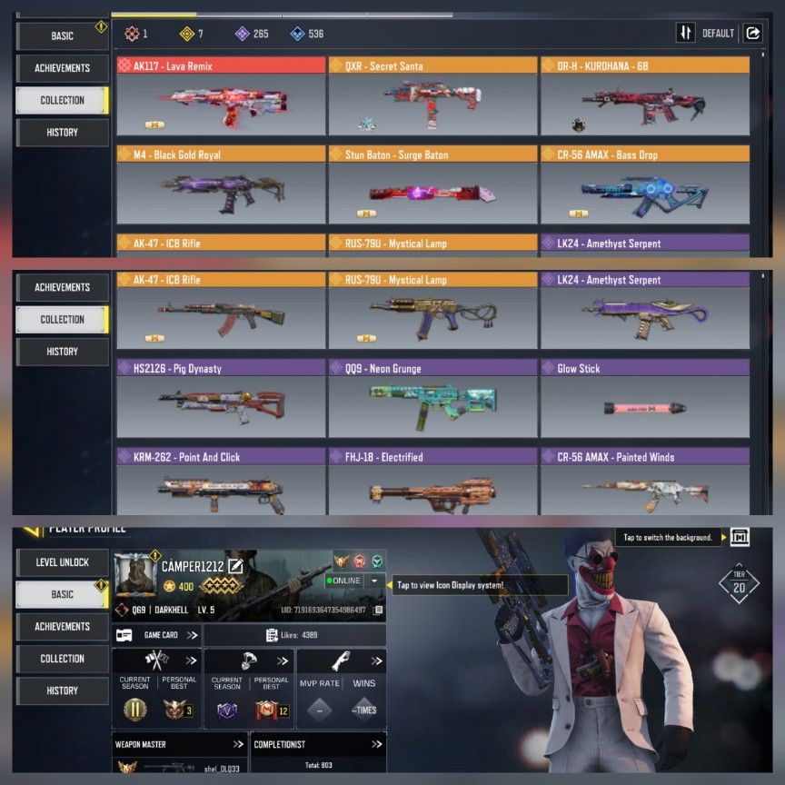 Lv283 💥legend guns 7💥epic guns233💥8 diamond gun💥skin 103 💥💥💥Global Version