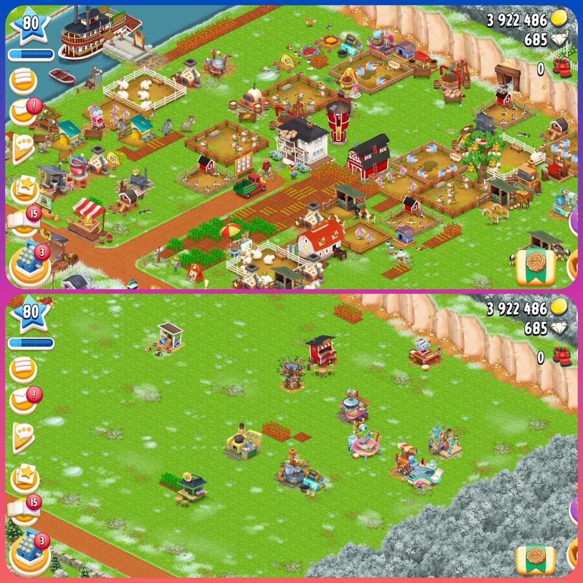 Level 80✨Barn 6000✨Silo 2000✨Main Land Open✨2-6M Coins✨Diamond 700+✨Full Tools Material In Bar...