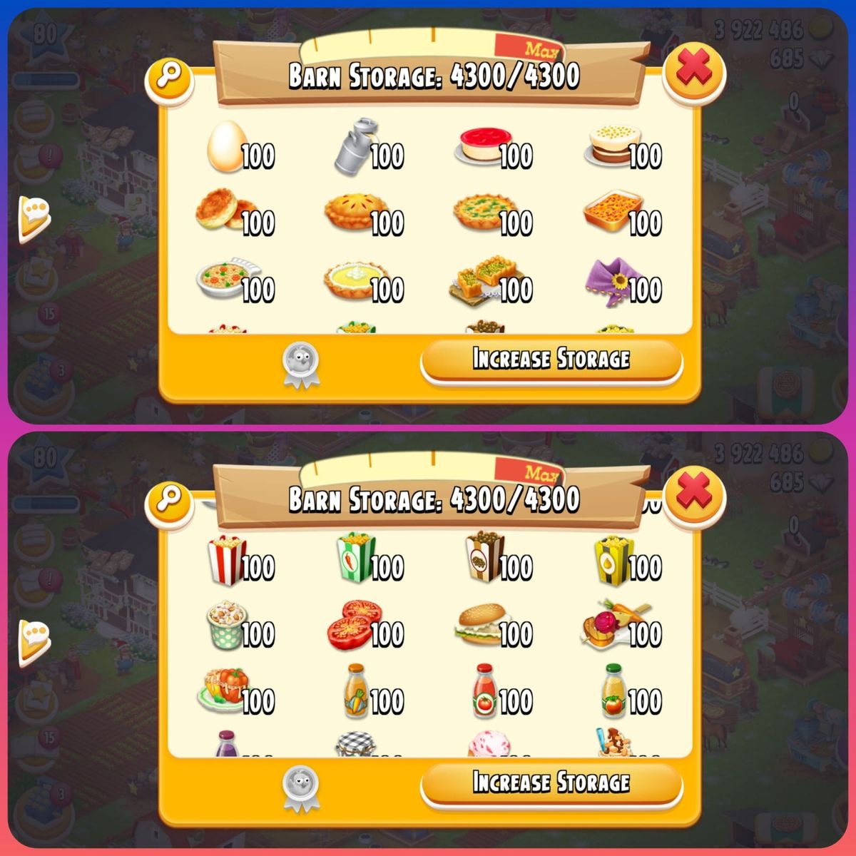 Level 80🌟Barn Storage 4000🌟Silo 1000🌟3M Coins🌟Main Land Open✨