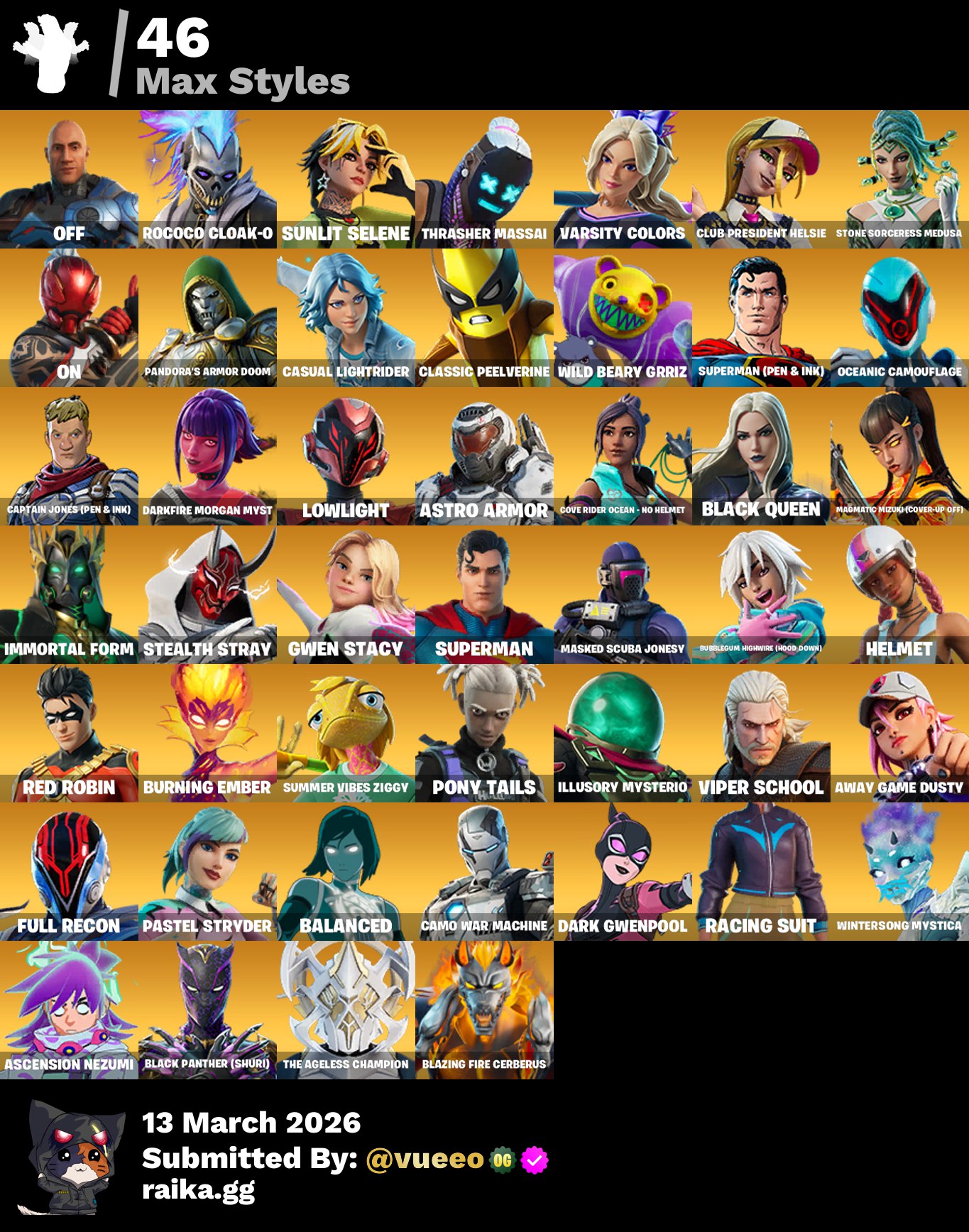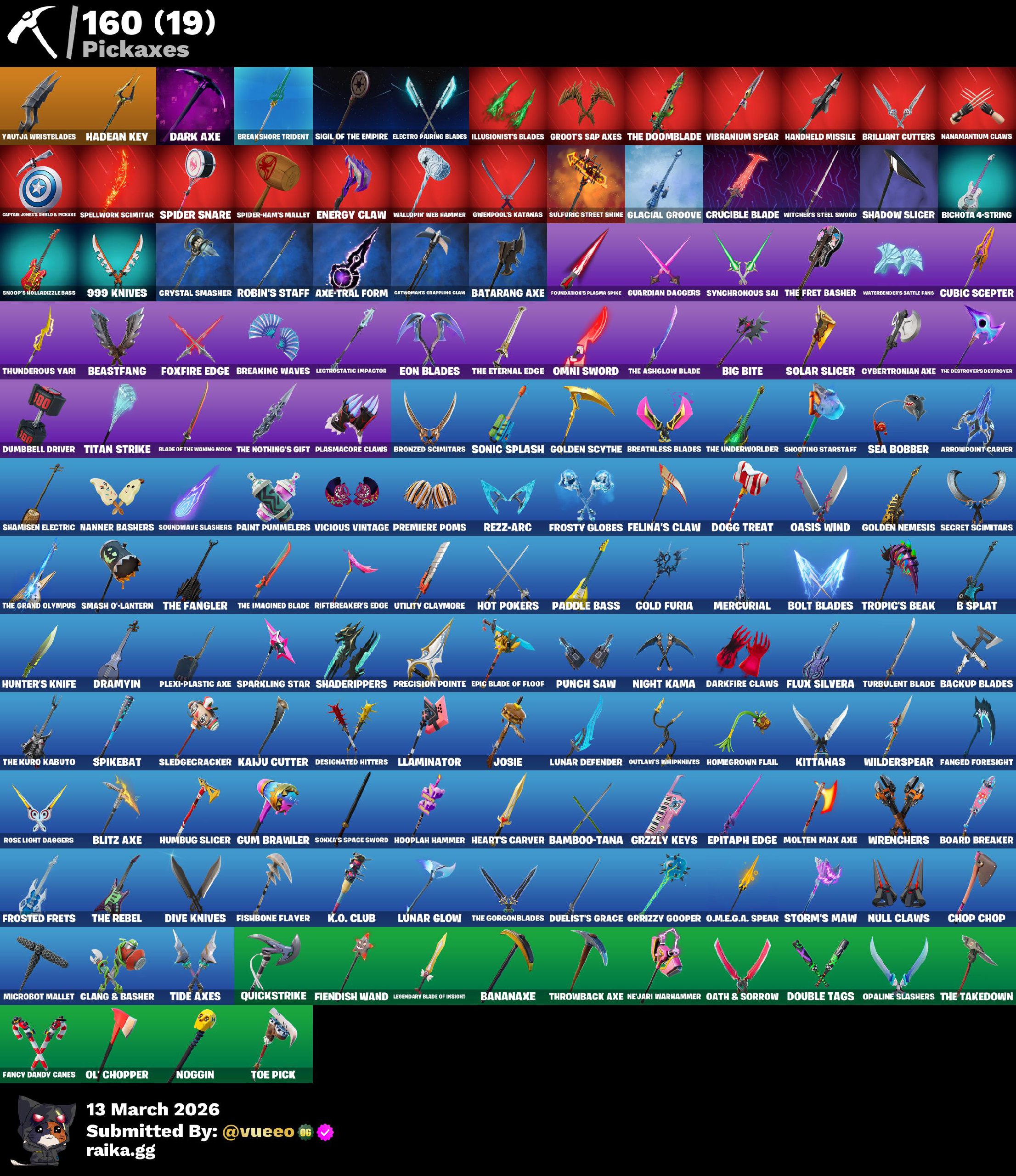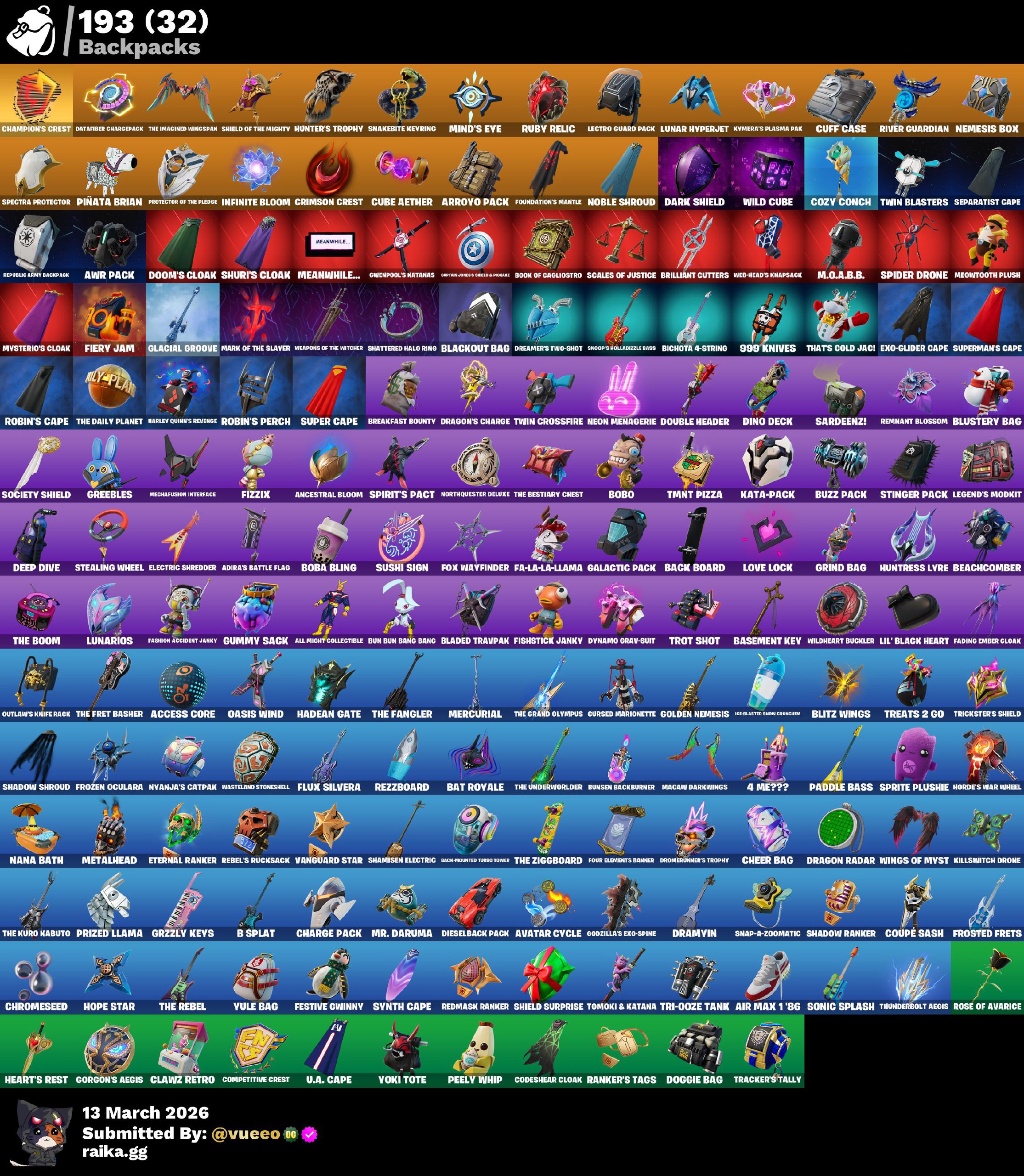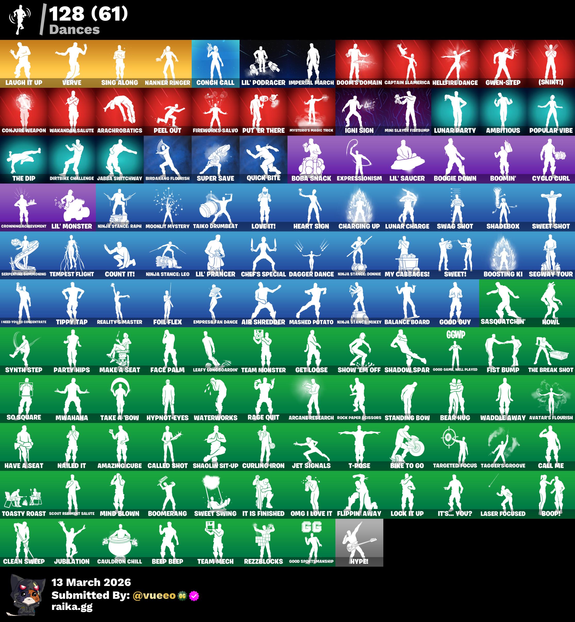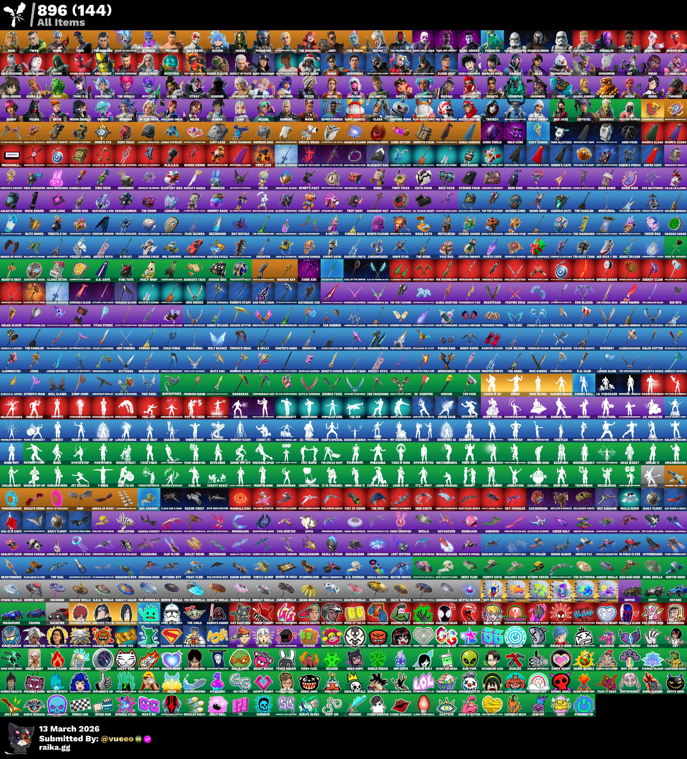 حساب فورت نايت 101 سكن حقائب الظهر 112 الآكسات 90 الرقصات 100 المظلات 96 باقي التفاصيل...