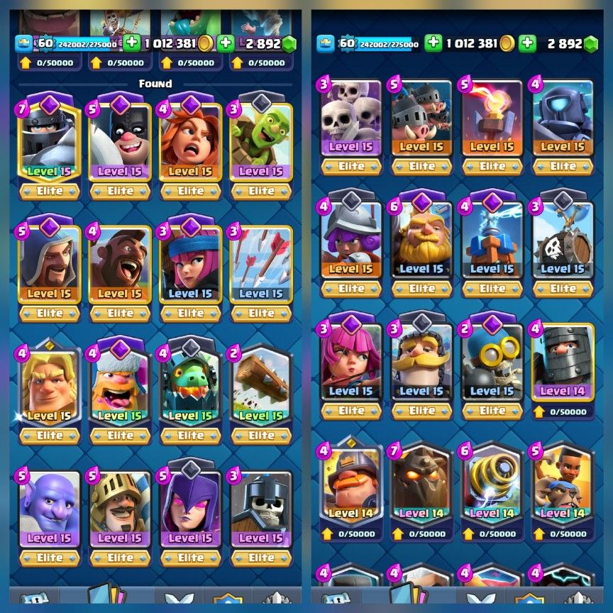 kt 15 💥lvl59💥20 Elite max card💥40 card lvl14 💥15Evolution card💥 cups10000💥💥 MAX