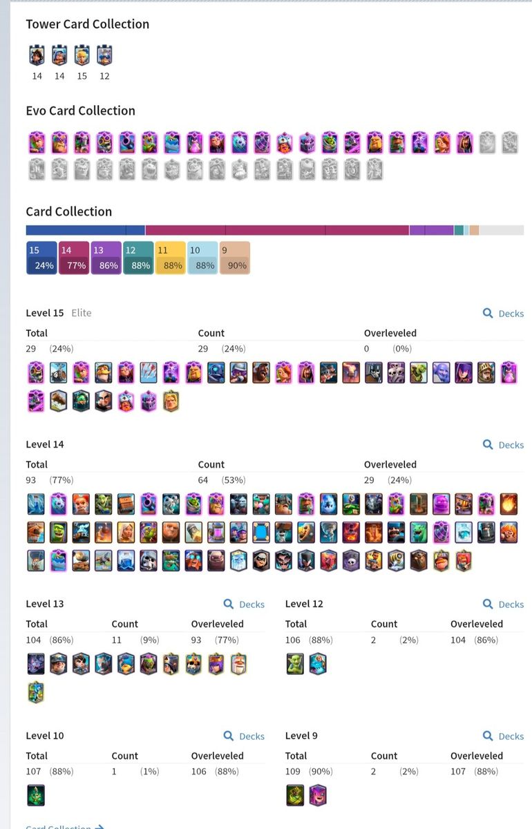 KT 15 Lev62 💥34 Elite card💥41 card lvl14💥18 Evolution 💥 Trophies 15000💥💥