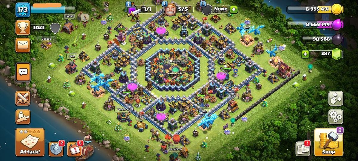 القرية مرتبة ودفاعات قوية مناسب للحروب والكلانات عدد الجواهر جيد الحساب نظيف وجاهز للنقل #G0P9YQRLG