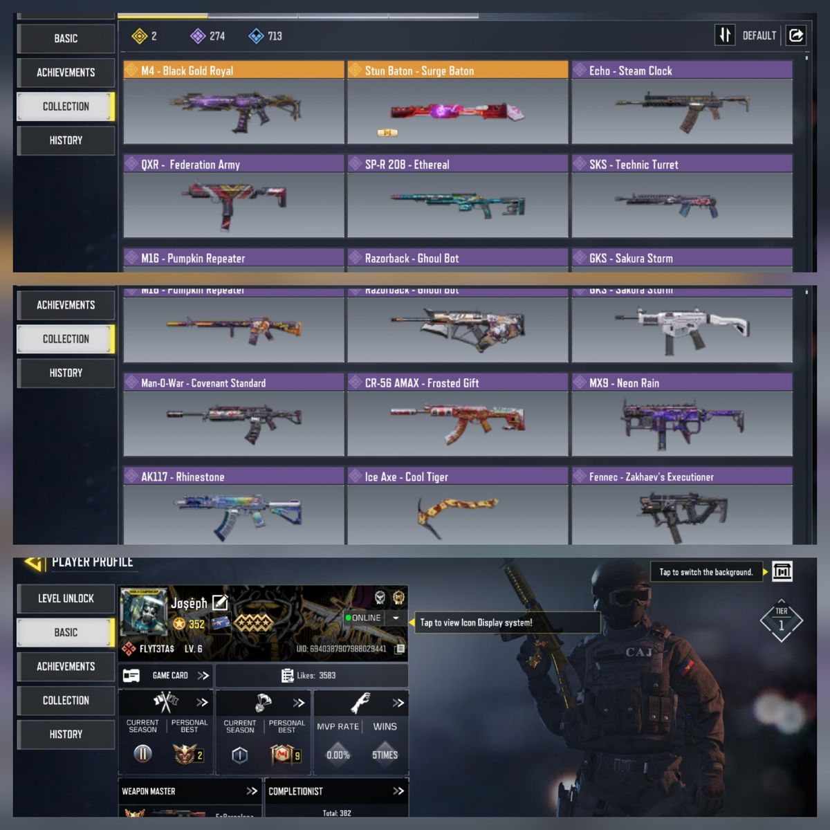 Lv400💥legend guns 7 💥epic guns254💥skin 190 💥💥💥Global Version