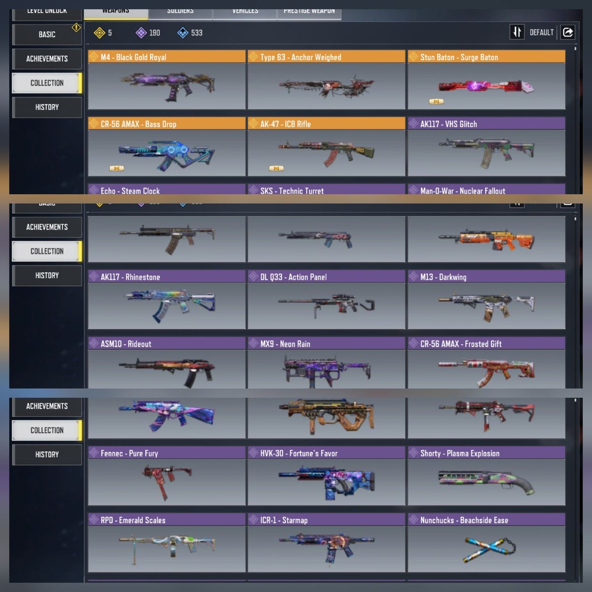 Lv400💥legend guns 7 💥epic guns254💥skin 190 💥💥💥Global Version