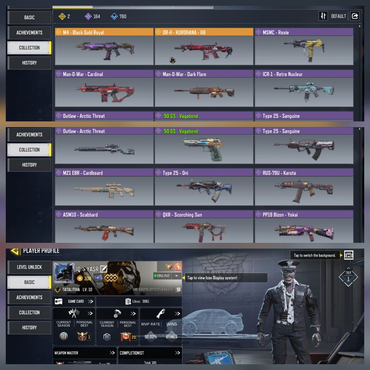 Lv352💥legend guns 2💥epic guns274💥skin 148💥💥💥Global Version