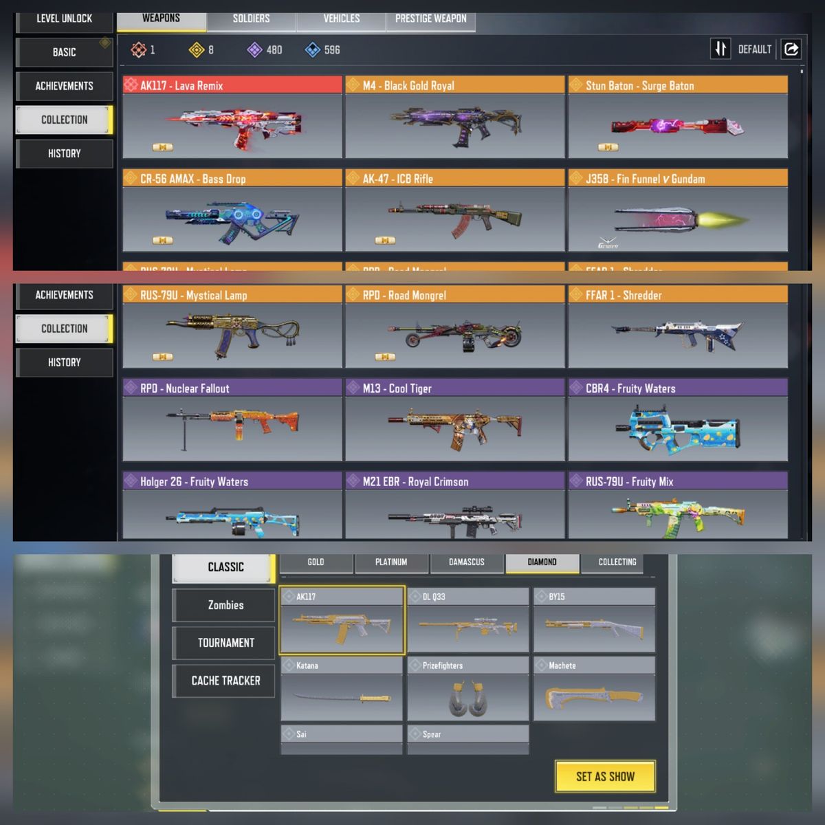 ak117 mythic💥legend guns 11 💥epic guns 327💥skin 157💥💥💥Global Version