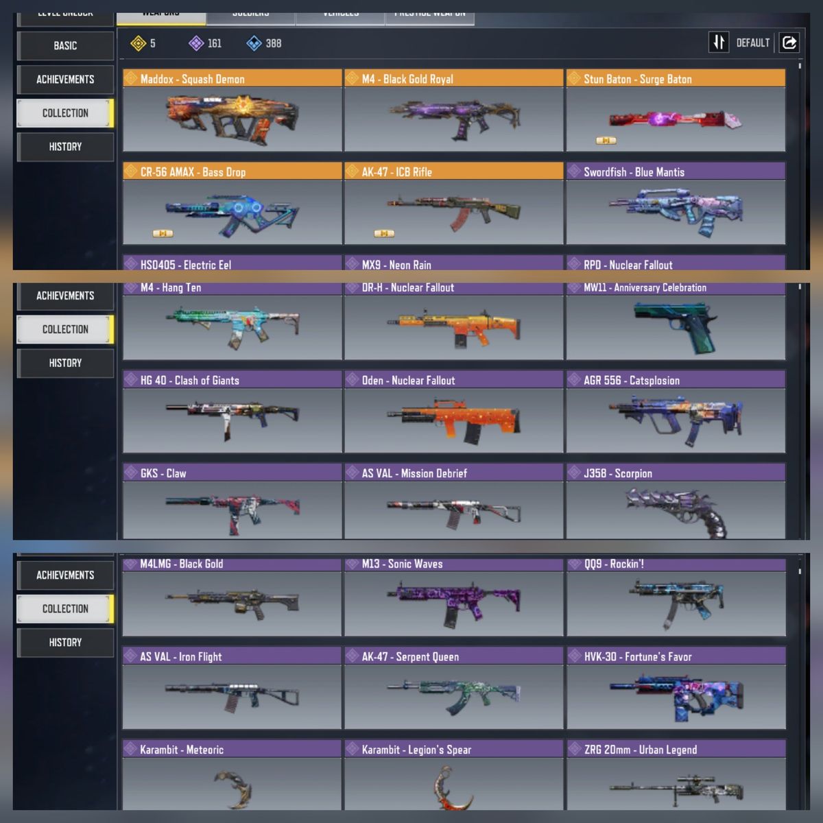 lvl353💥3legend guns 💥164epic guns💥73skin 💥💥💥Global Version