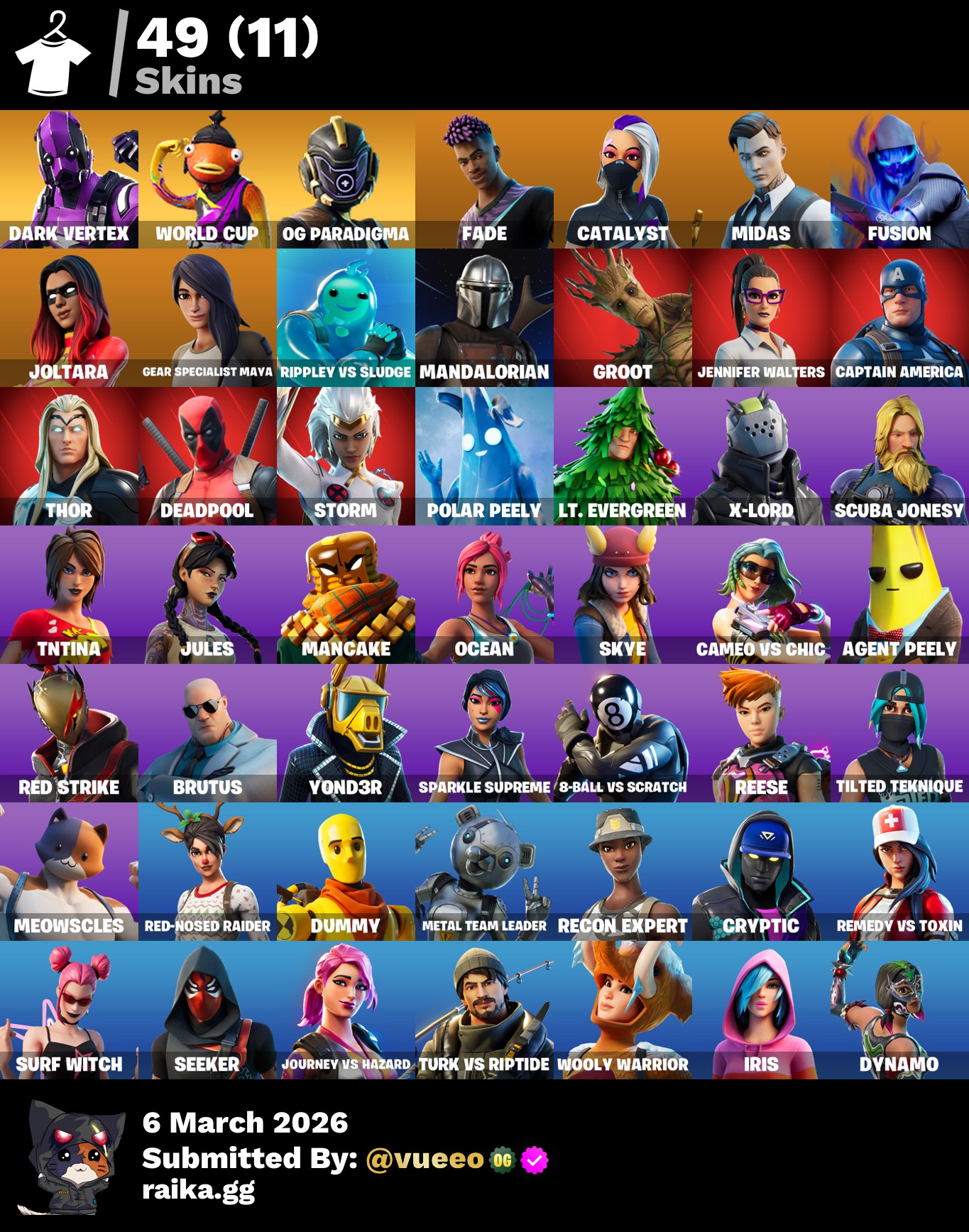 ( حساب فورت ) فوق 150 سكن و اكثر من 150 رقصة وفيه طور الزومبي القديم خامل من سنة او اكثر سكنات ورقصا...