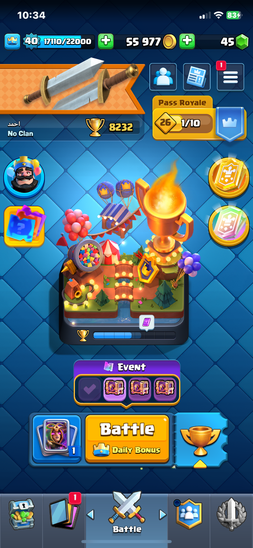 حساب كلاش رويال اساسي مدى الحياه ما ينحسب وضمان مدى الحياه الحساب فيه اكثر من 6 ايفو والبطاقات...