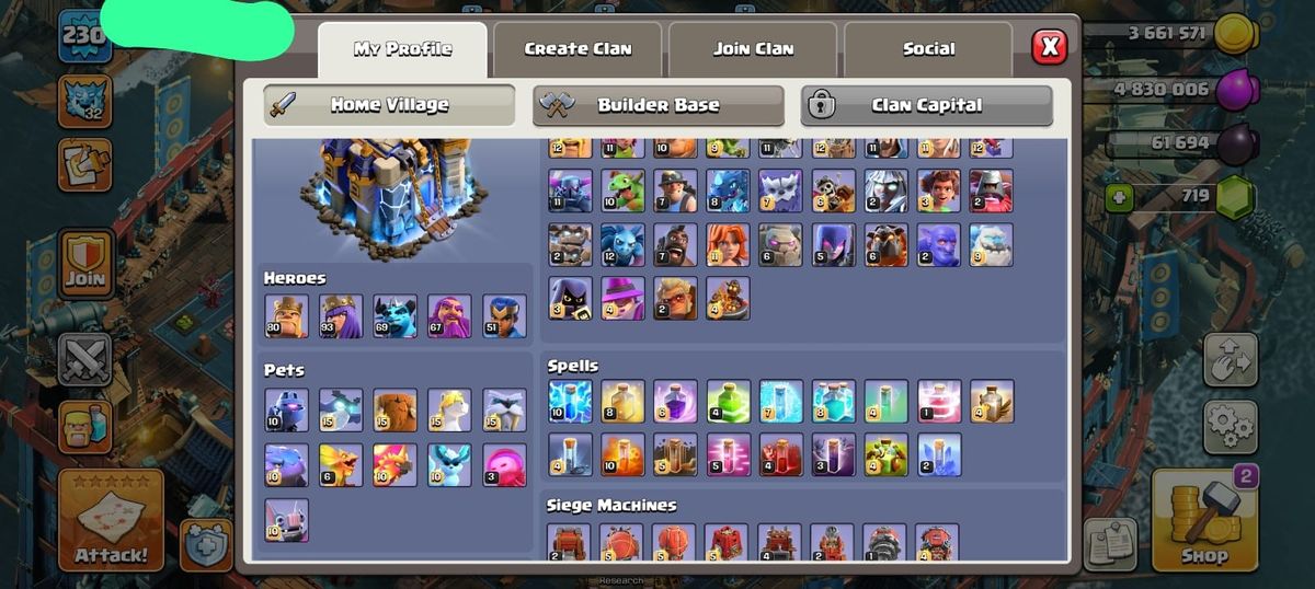 حساب كلاش أوف كلانس قوي جدًا تاون هول 18 متقدم | مستوى 250 قرية شبه ماكس ودفاعات عالية مناسب للحر...