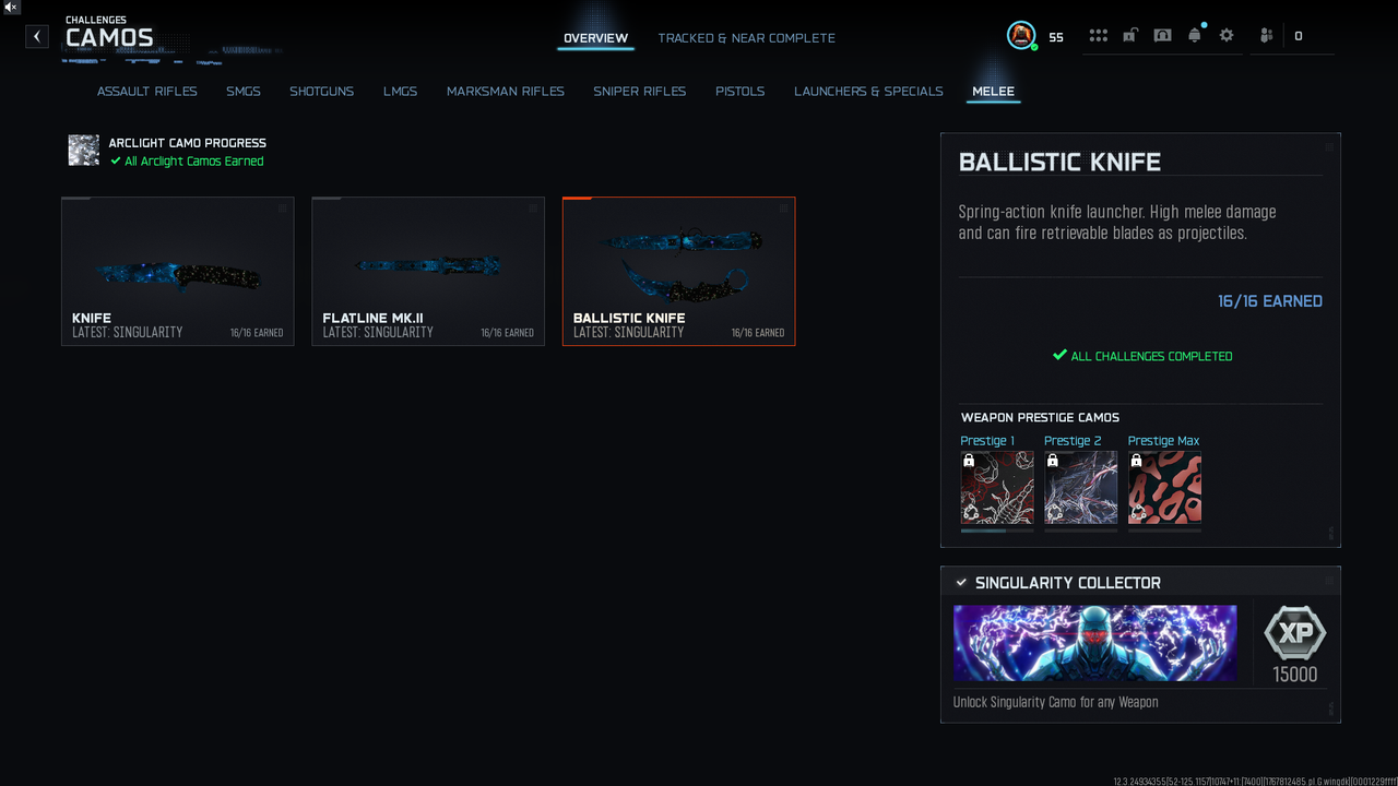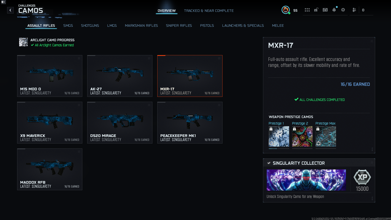 حساب SINGULARITY – لون الملتي الأخير (جهد) 🔥 • يدعم جميع المنصات: Xbox – PSN – PC • جاهز للرانك - 50 فوزه • مستوى Prestige 2 جاهز للترقية إلى Prestige 3 • المستوى: 55 • 🎯 30 سلاح بكامو Singularity • ☢️ Calling Card Nuke لـ 25 سلاح • ☢️ Calling Card النيوك العادي • ✏️ توكنين تغيير اسم • الحساب أساسي • كامل معلوماته ومضمون