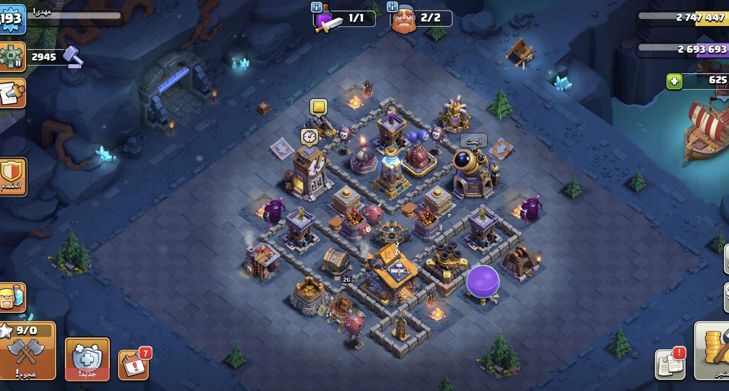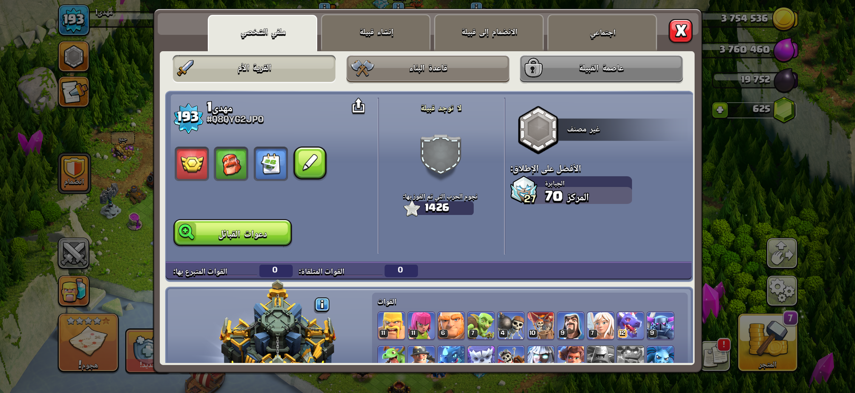 قرية كلاش اوف كلانس جوكر نادرة مناسبه للحروب دفاعات تاون هول ٩ والتاون هول الفعلي ١١ والجيش والملوك...