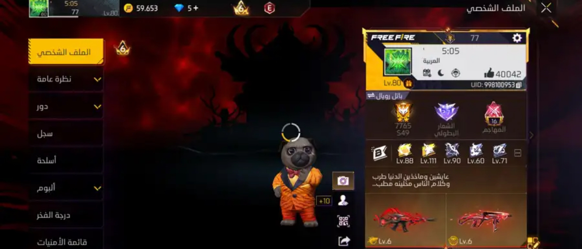 الحساب فيه اسلحه ومليان لوت وكل شي والسكل تري نفس حق تيفو وبطات