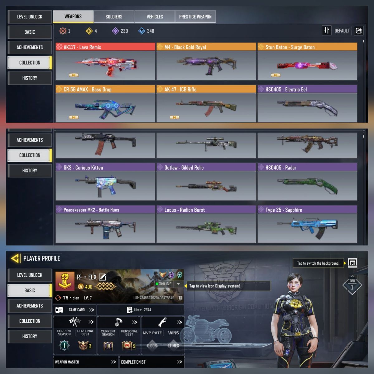 Lv283 💥legend guns 7💥epic guns233💥8 diamond gun💥skin 103 💥💥💥Global Version