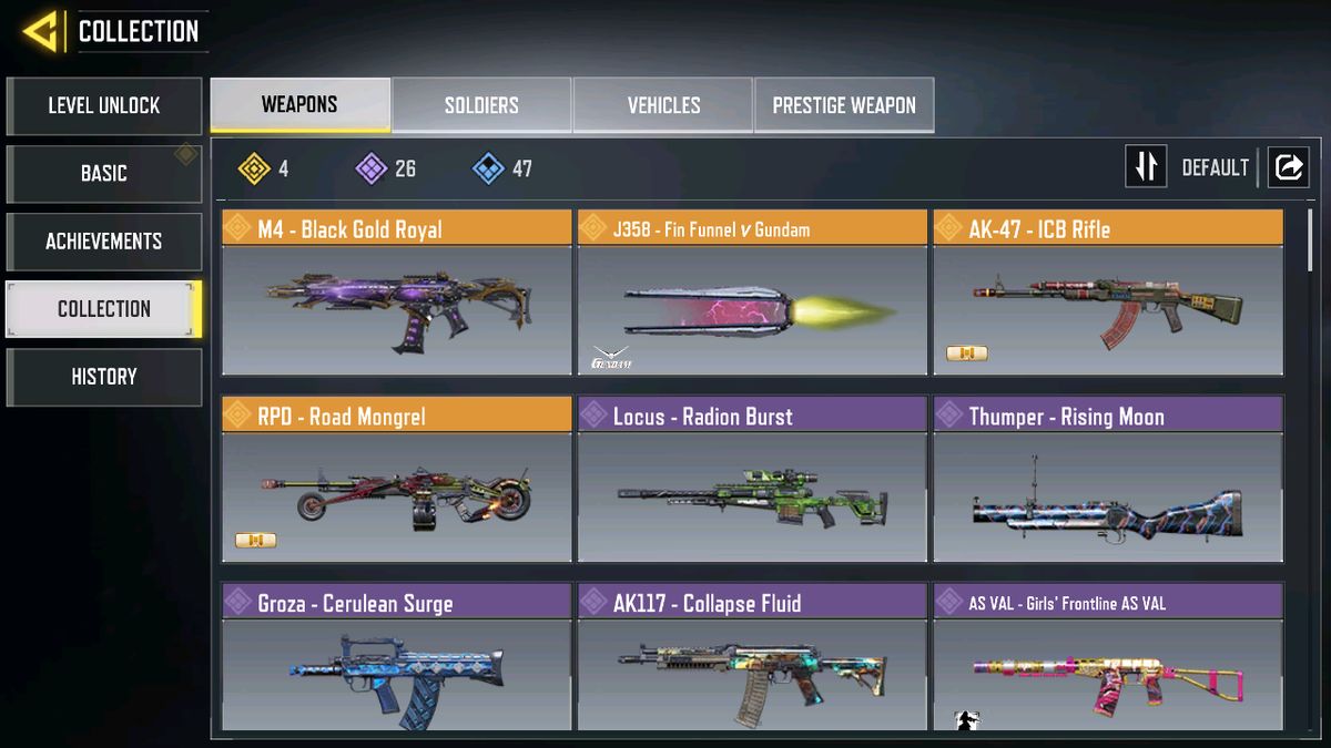 5 Legendary🔥Groza🔥AK-47🔥RPD🔥J358 🔥M4 🔥25 Epic weapons🔥8 Epic skins🔥86 lvl🔥1 owner🔥can chan...