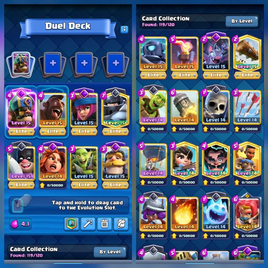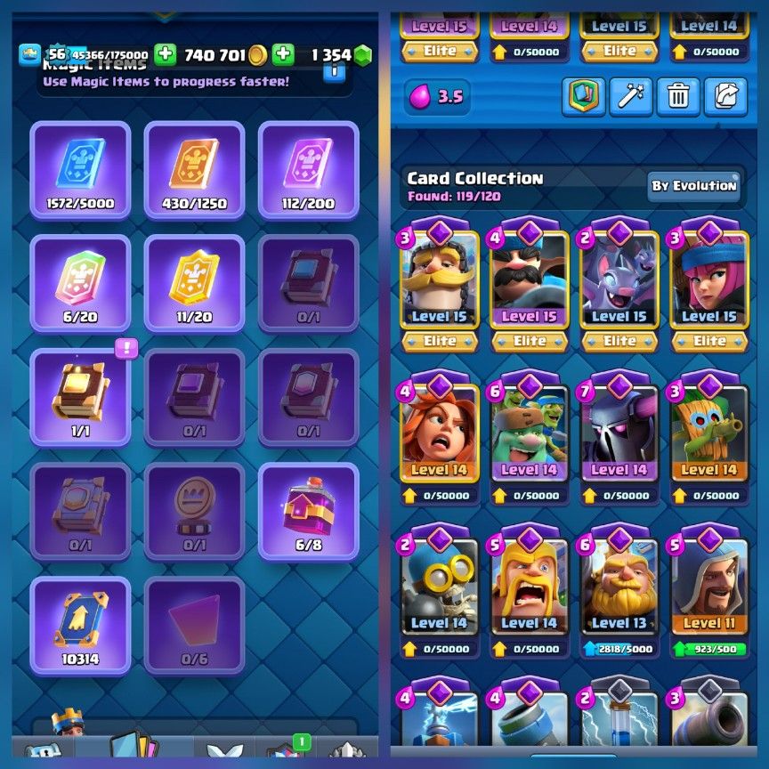 kt 15 💥lvl59💥20 Elite max card💥40 card lvl14 💥15Evolution card💥 cups10000💥💥 MAX