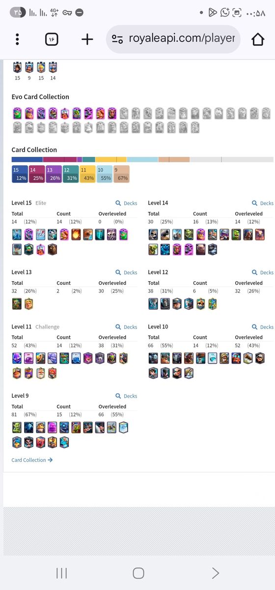 KT 15 Lev62 💥34 Elite card💥41 card lvl14💥18 Evolution 💥 Trophies 15000💥💥