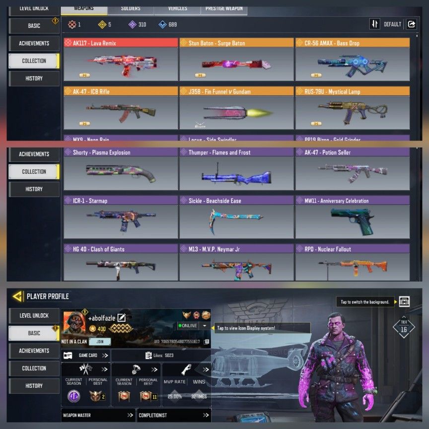 ak117 mythic💥 legend guns 7💥epic guns 265 💥skin 141 💥💥💥Global Version