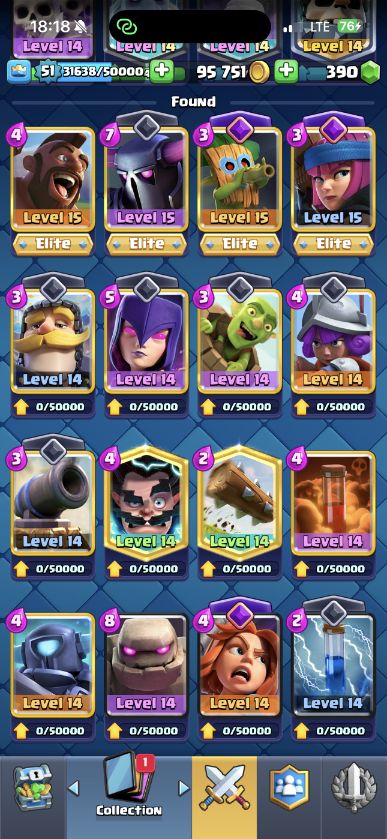 KT 15 Lev62 💥34 Elite card💥41 card lvl14💥18 Evolution 💥 Trophies 15000💥💥