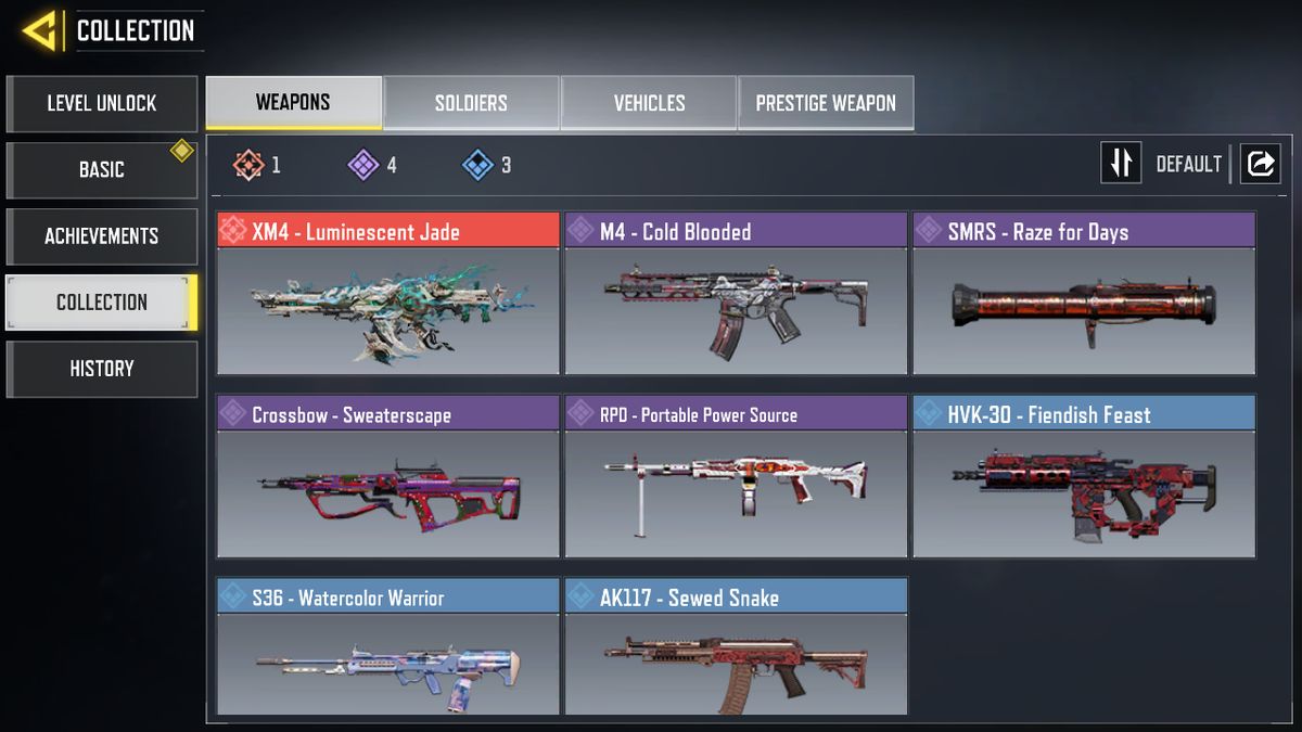 Legendary skin Hidora Ka🔥4 Legendary: M4🔥RPD🔥J358 🔥AK-47🔥26 Epic weapons🔥5 Epic skins🔥87 lvl...