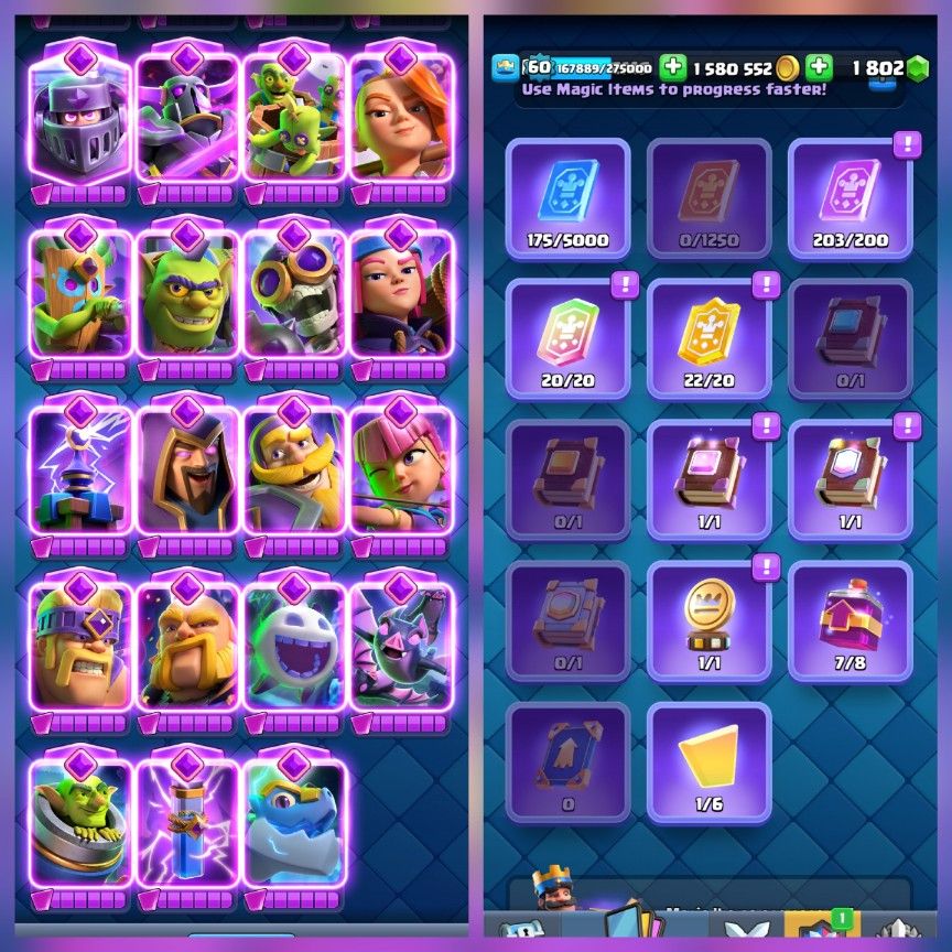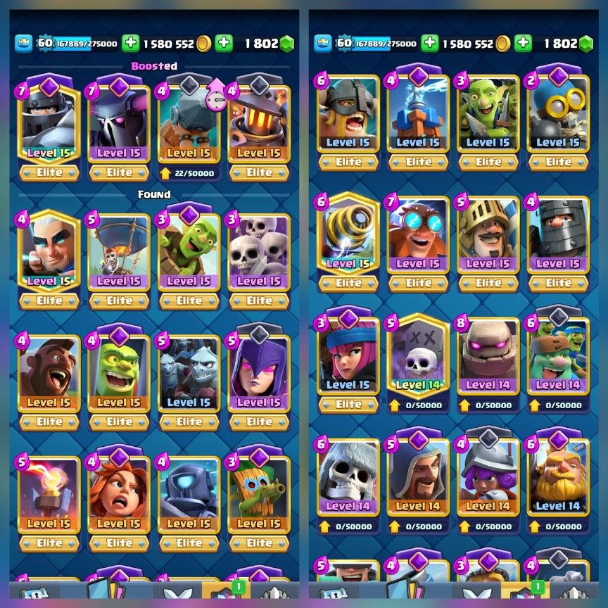 KT 15 Lev62 💥34 Elite card💥41 card lvl14💥18 Evolution 💥 Trophies 15000💥💥