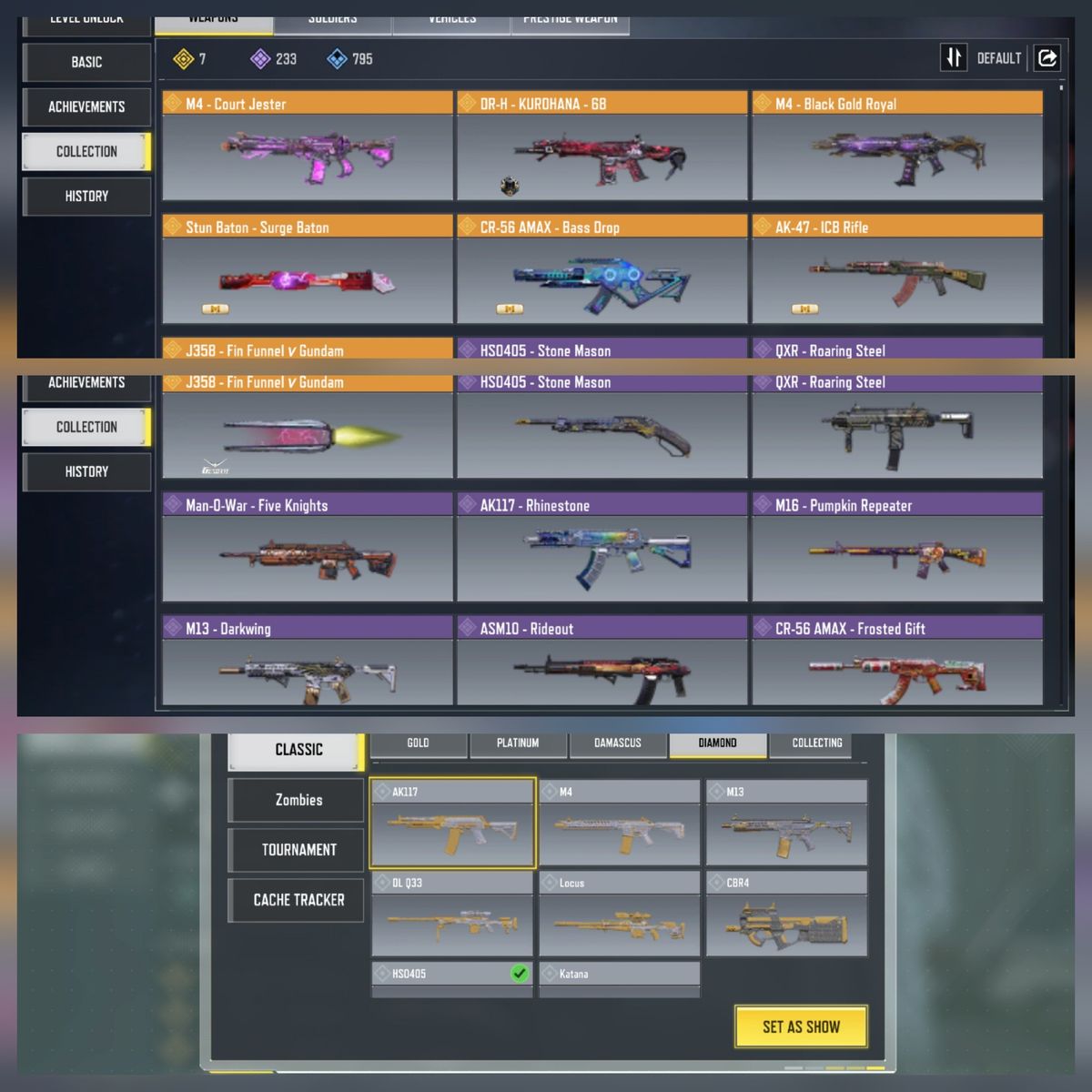 ak117 mythic💥4legend guns 💥266epic guns💥167skin 💥💥💥Global Version