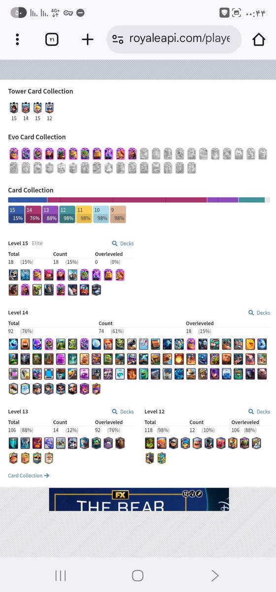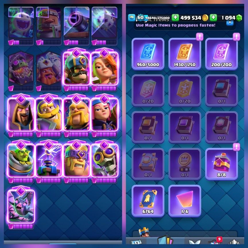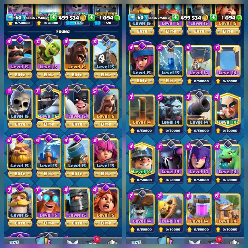 KT 15 Lev62 💥34 Elite card💥41 card lvl14💥18 Evolution 💥 Trophies 15000💥💥