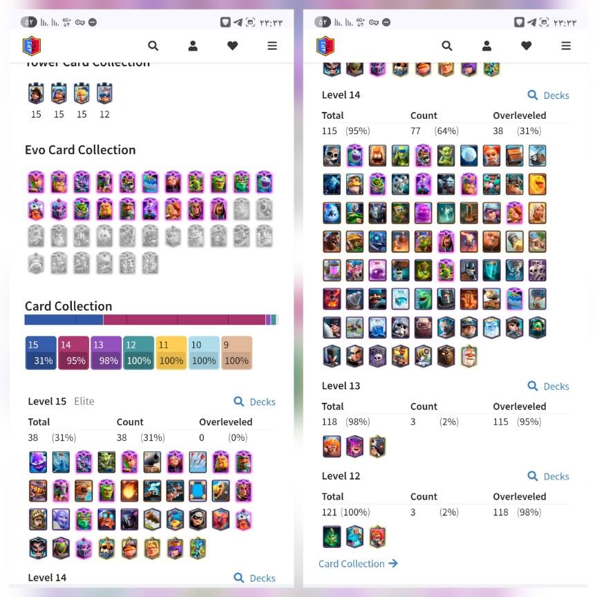 KT 15 Lev62 💥34 Elite card💥41 card lvl14💥18 Evolution 💥 Trophies 15000💥💥