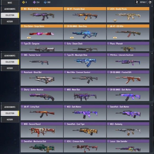 Lv400💥legend guns 6💥epic guns224💥132skin 💥💥💥Global Version