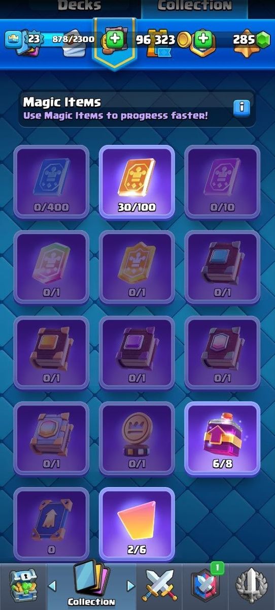 🏆2186🏆🔮46/120🔮🔷🌀10 GOBLINS🌀❄️23 LVL❄️🌎96K COINS🌎⭐️285 CRYSTALS⭐️7 EMOJI🍀