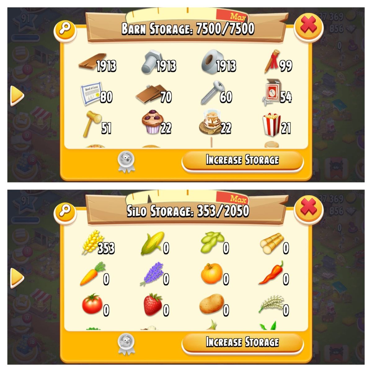 Level 90 ✨ Barn 7500✨ Silo 2000 ✨ Main Land Open ✨5M - 10M Coins ✨ Full Mix Tools/Foods In Barn ⚡
