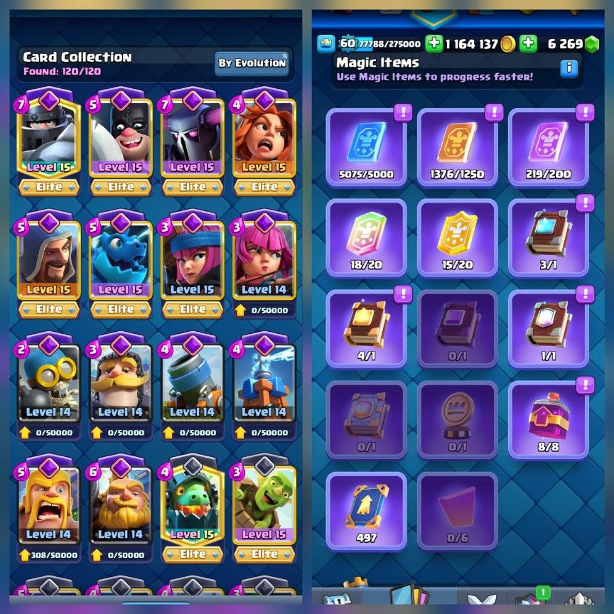 KT 15 💥lvl60 💥25Elite max card💥 37card lvl 14💥17Evolution card💥 cups11300💥💥💥 max