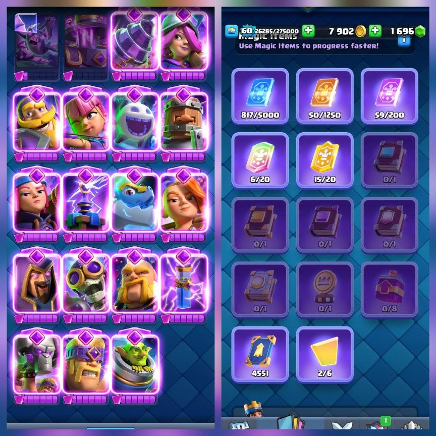 KT 15 Lev62 💥34 Elite card💥41 card lvl14💥18 Evolution 💥 Trophies 15000💥💥