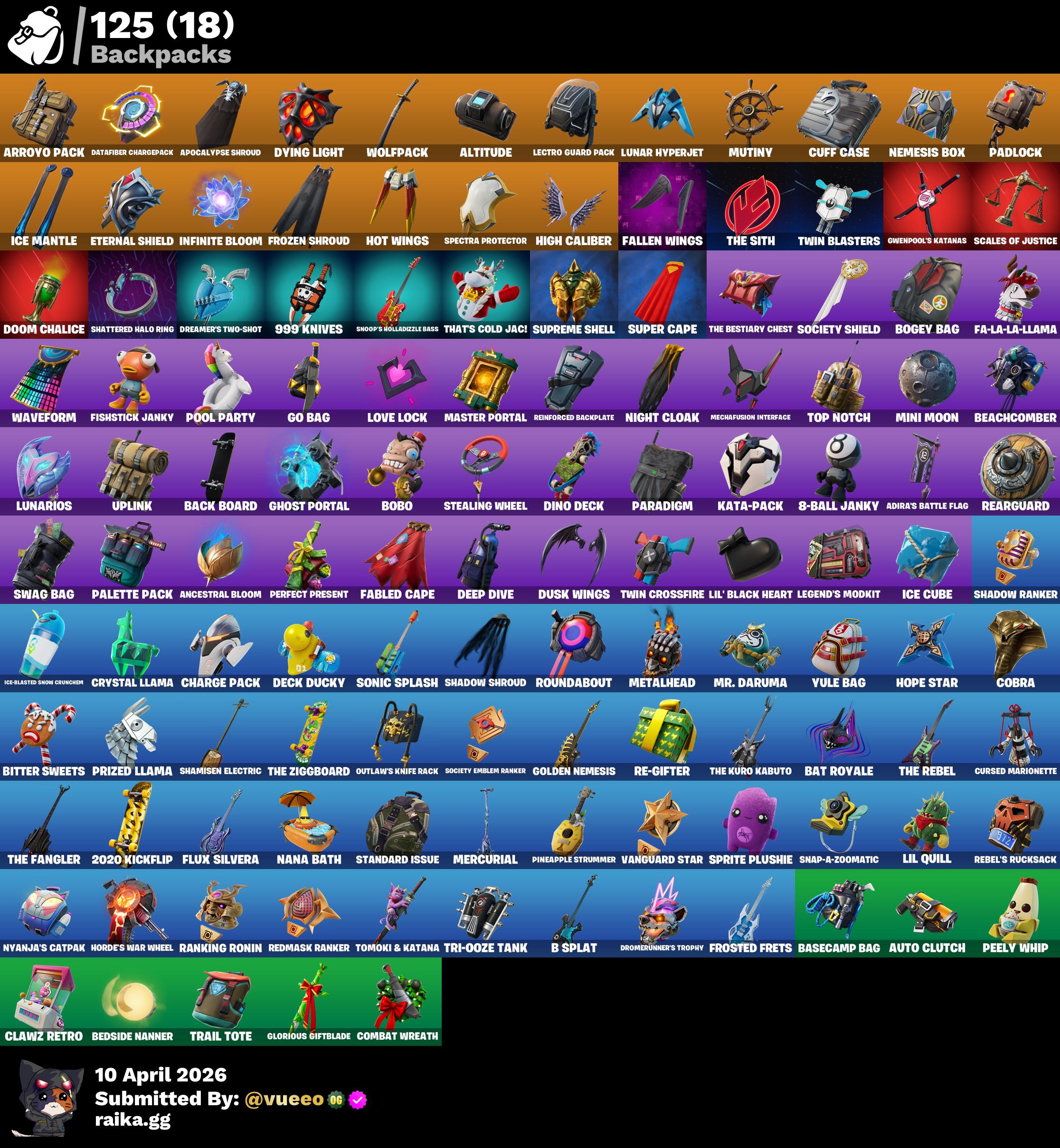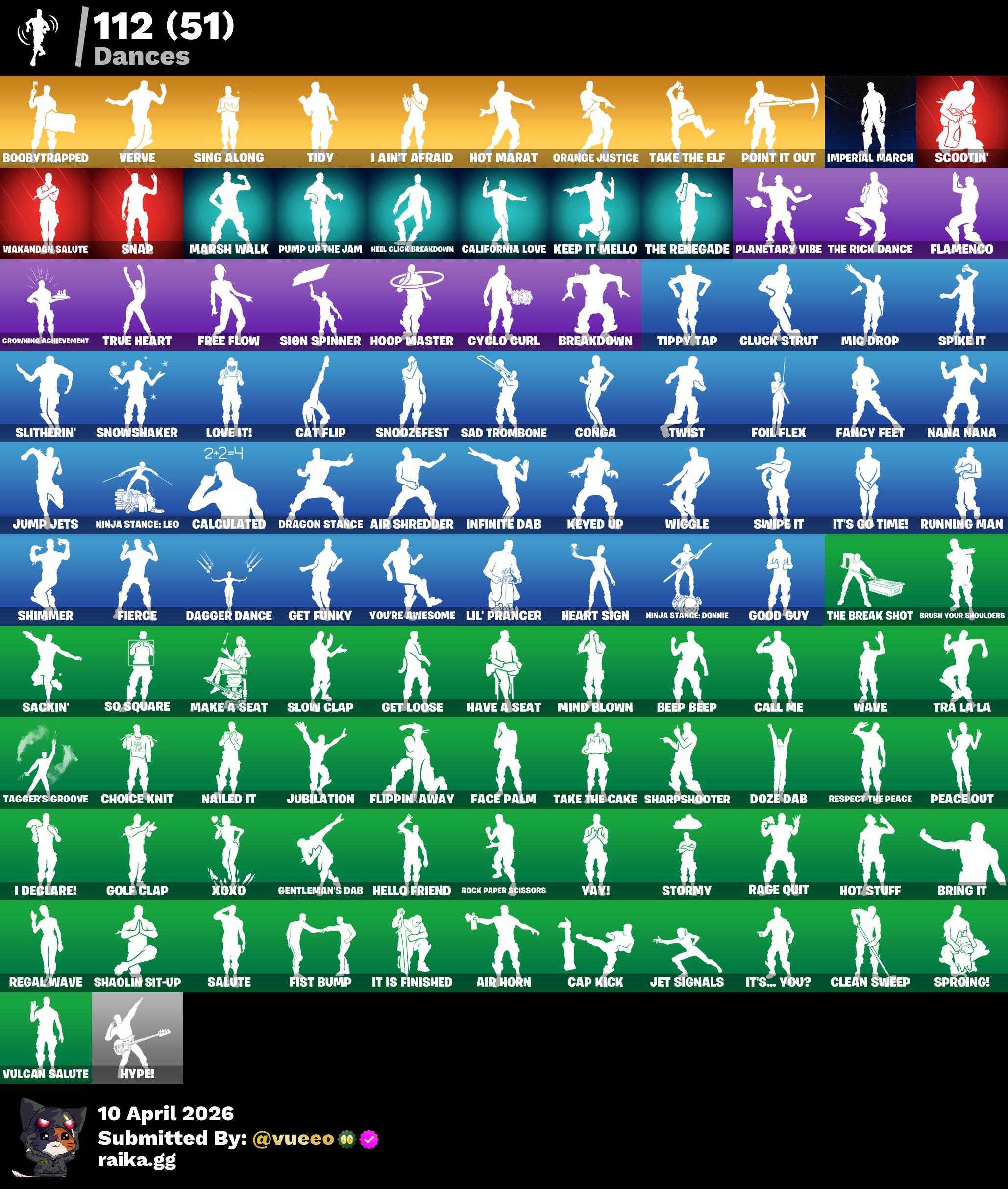 فورت نايت 76 سكن من ضمنها 13 سكن شوب نوادر وفيه رقصات نادره السكنات: 76 حقائب الظهر: 141 الآكسات...