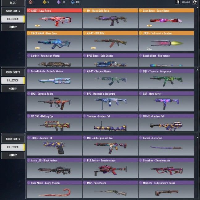 ak117 mythic💥 legend guns 5💥epic guns 187 💥skin 86💥💥💥Global Version