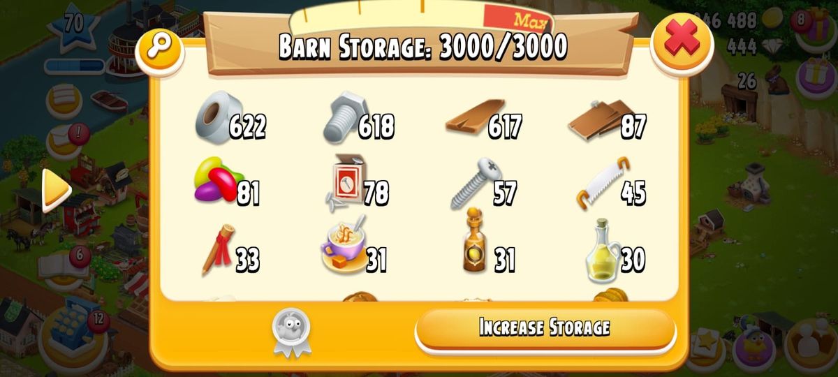 Level 60✨Barn Storage 4000✨Silo Storage 1000✨1M - 3M Coins✨Full Material In Barn✨