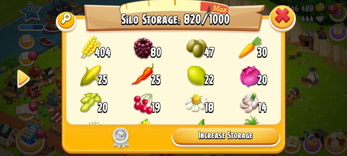 Level 80🌟Barn Storage 4000🌟Silo 1000🌟3M Coins🌟Main Land Open✨