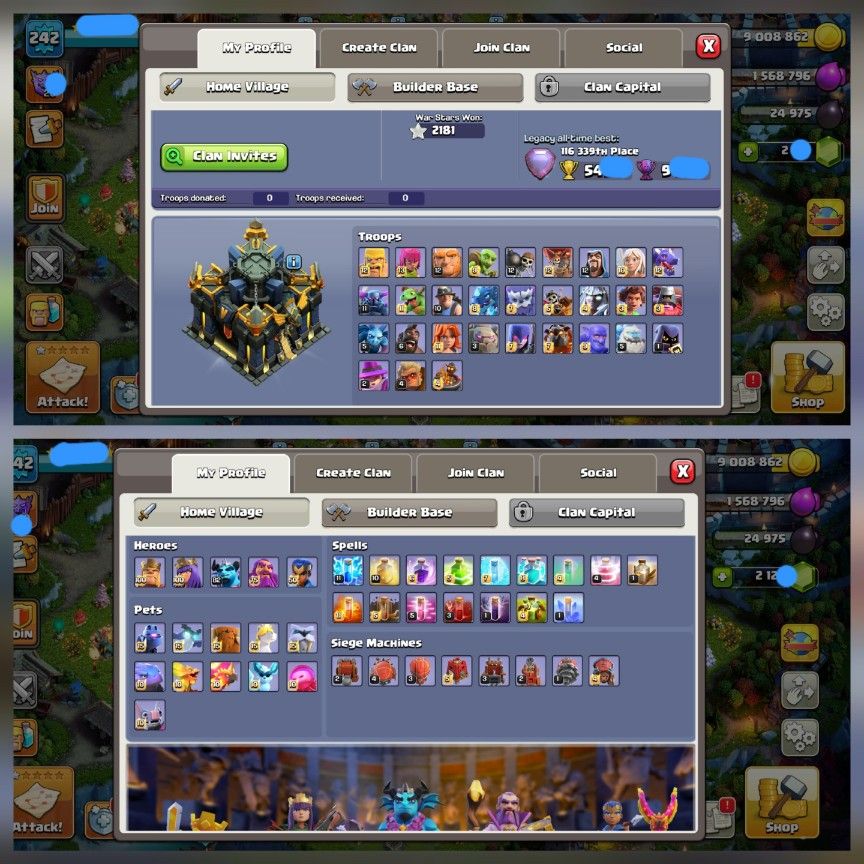 TH17 LVL247💥max HERO100/100/90/75/50💥💥💥ability max