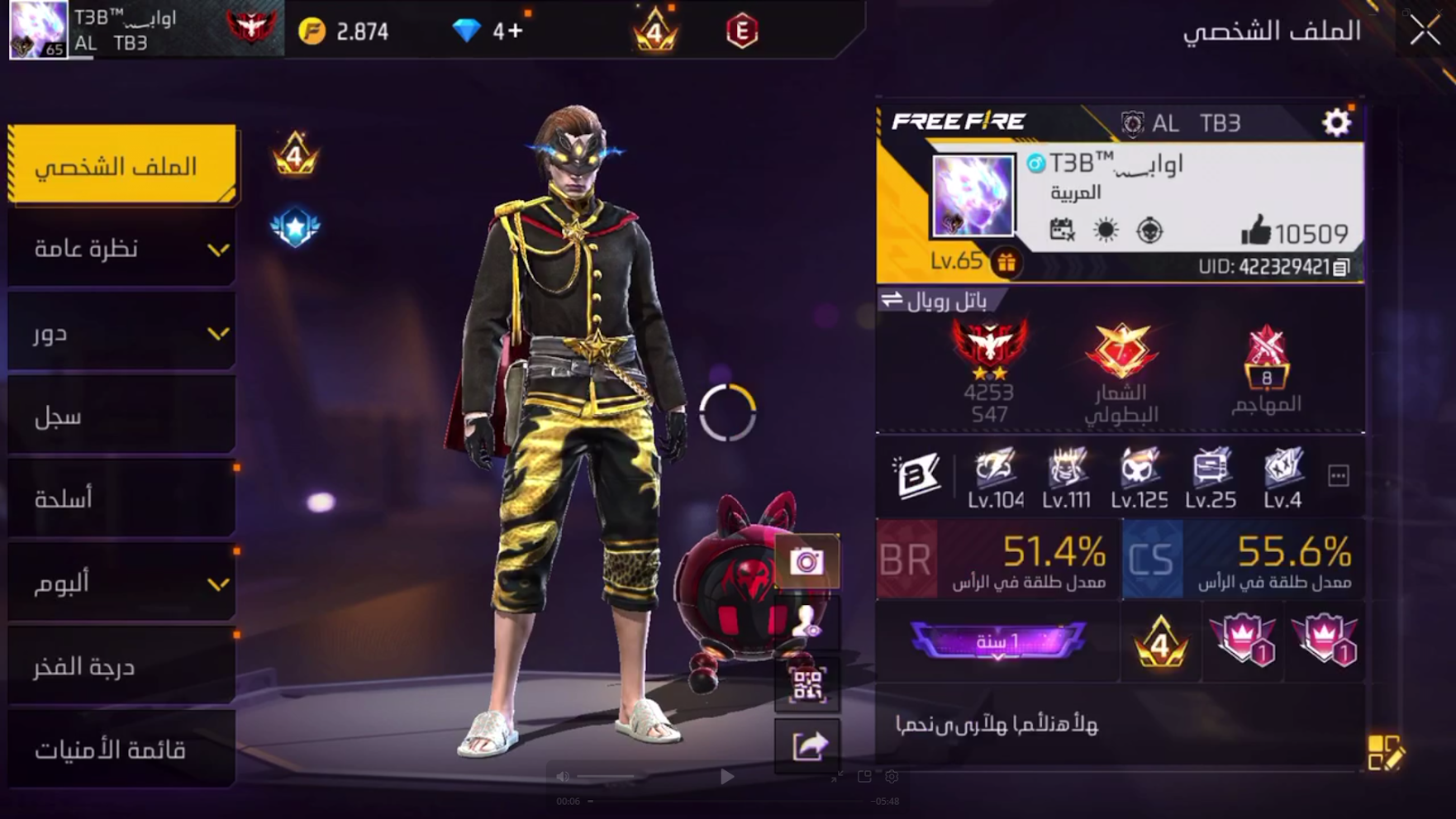 حساب ببجي من الندوار لفل 65