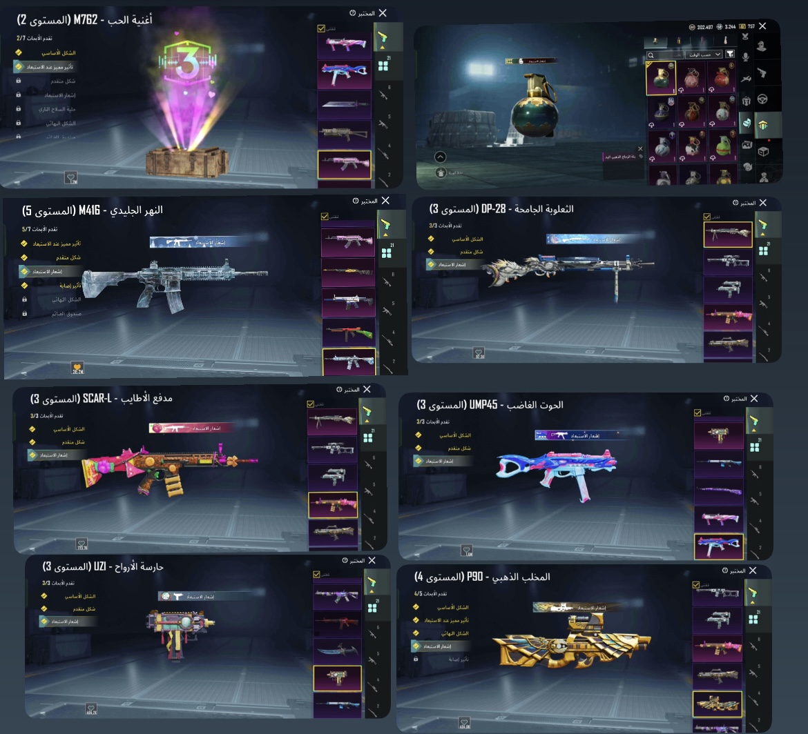 حساب ببجى مموبيل لفل64 عدد الازياء425 عدد الاسلحة 116 اسلحة التطوير 12 M416 level 5, kill messag...