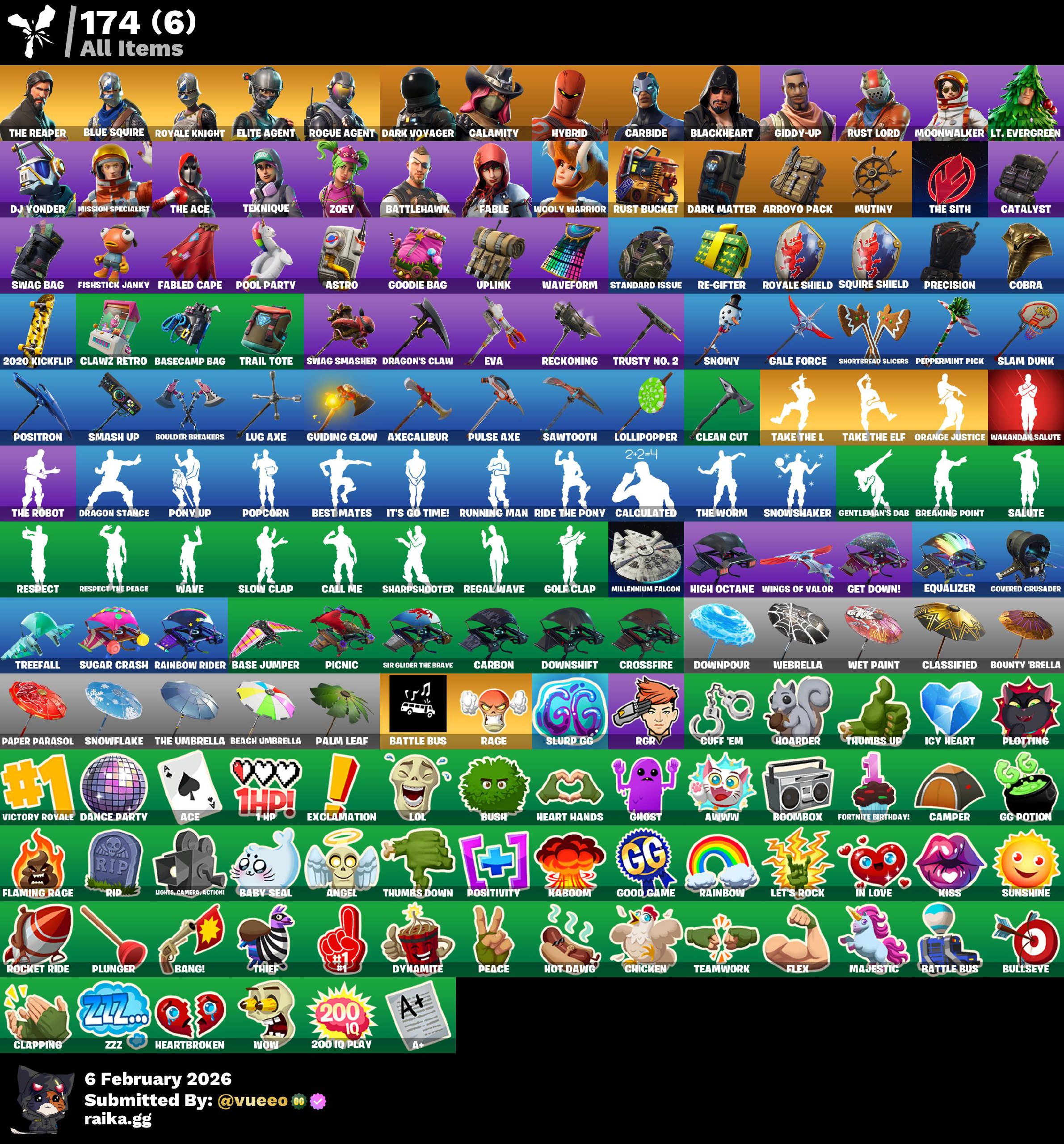 اساسي - 180 سكن - يربط جميع المنصات Outfits: 180 Backpacks: 217 Pickaxes: 177 Dances: 161 Glid...