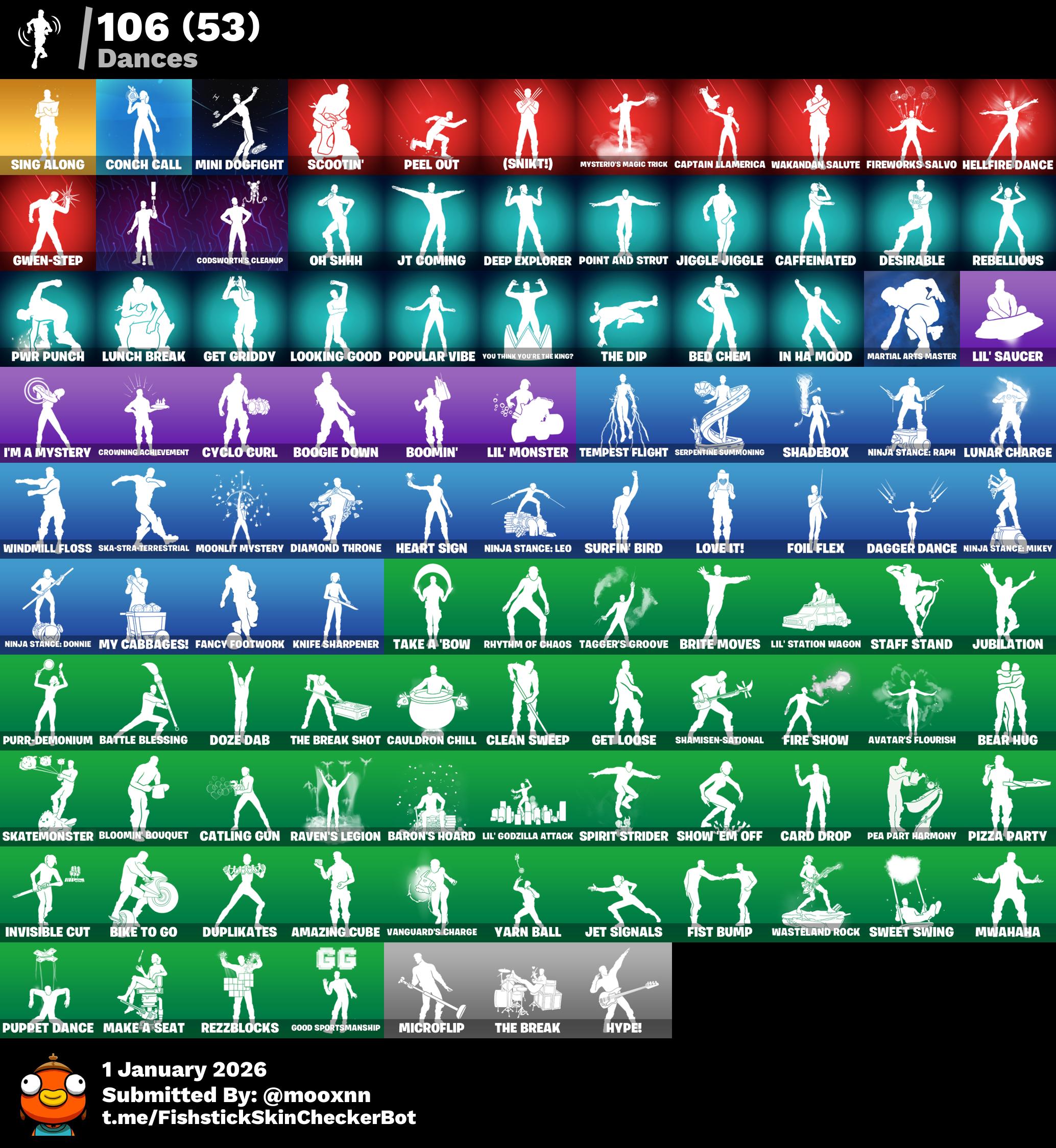 حساب نادر وفيه رقصات نادره وفيه سمكه البطوله وكرة القدم الامريكيه وفيه طور الزومبي يعني فيبوكس لا نه...