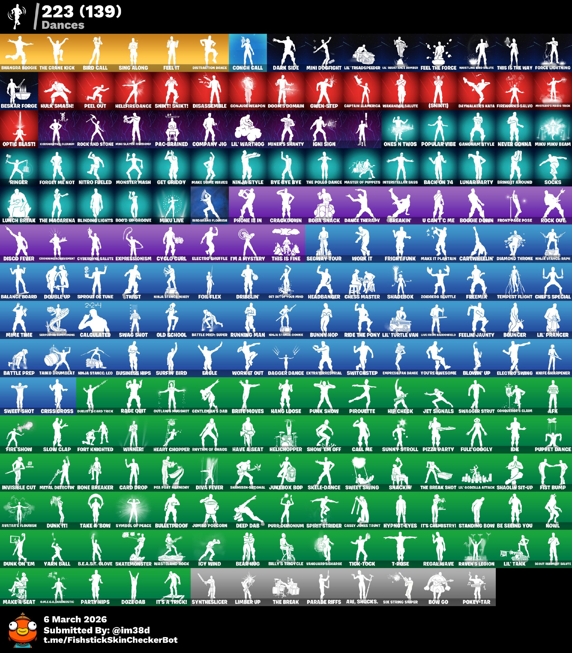 ( حساب فورت ) فوق 150 سكن و اكثر من 150 رقصة وفيه طور الزومبي القديم خامل من سنة او اكثر سكنات ورقصا...