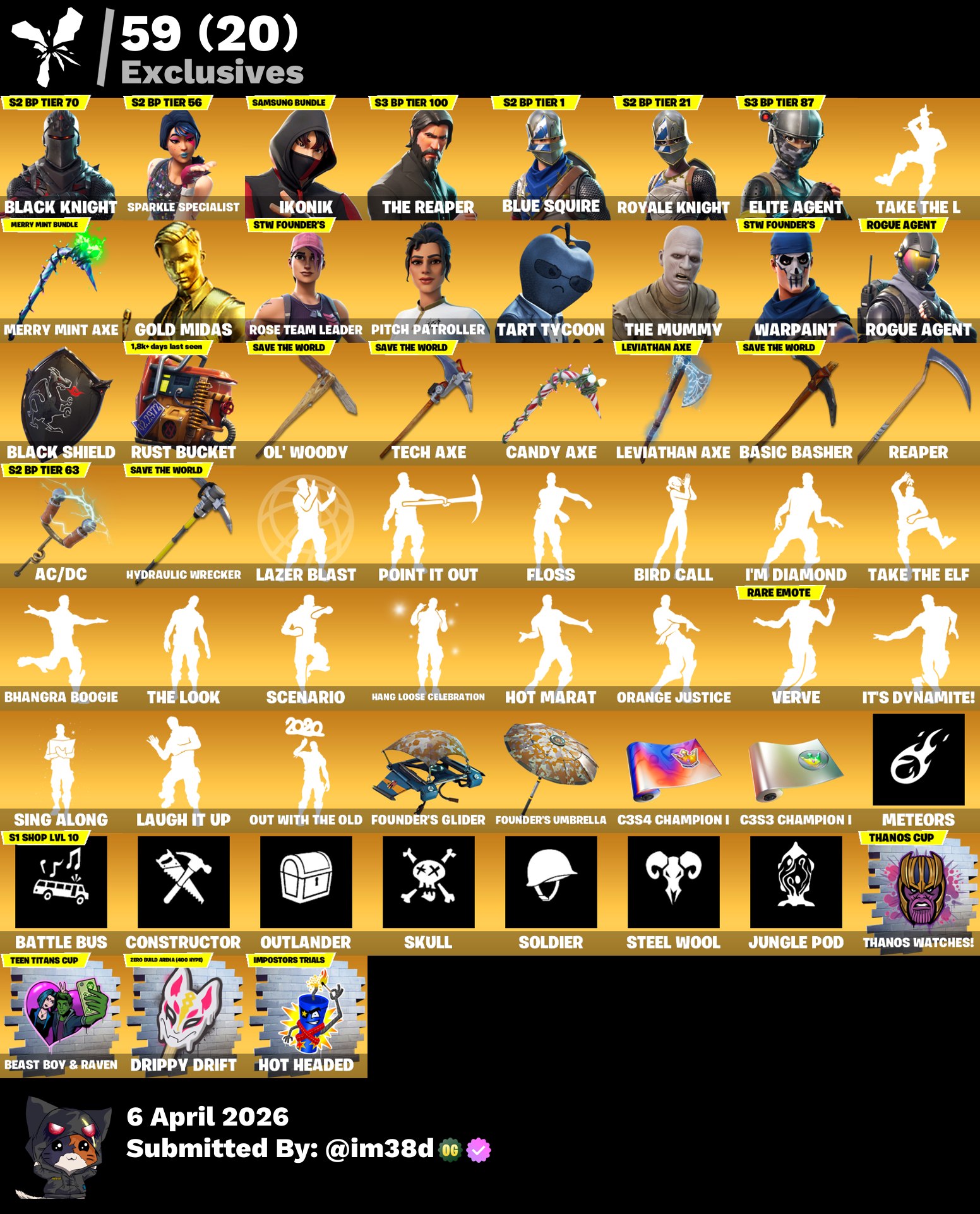 - حساب فورت فيه Wonder + Ikonik , Honor , Royale Bomber + 178 سكن + 107 آكس + 125 رقصه ضم...