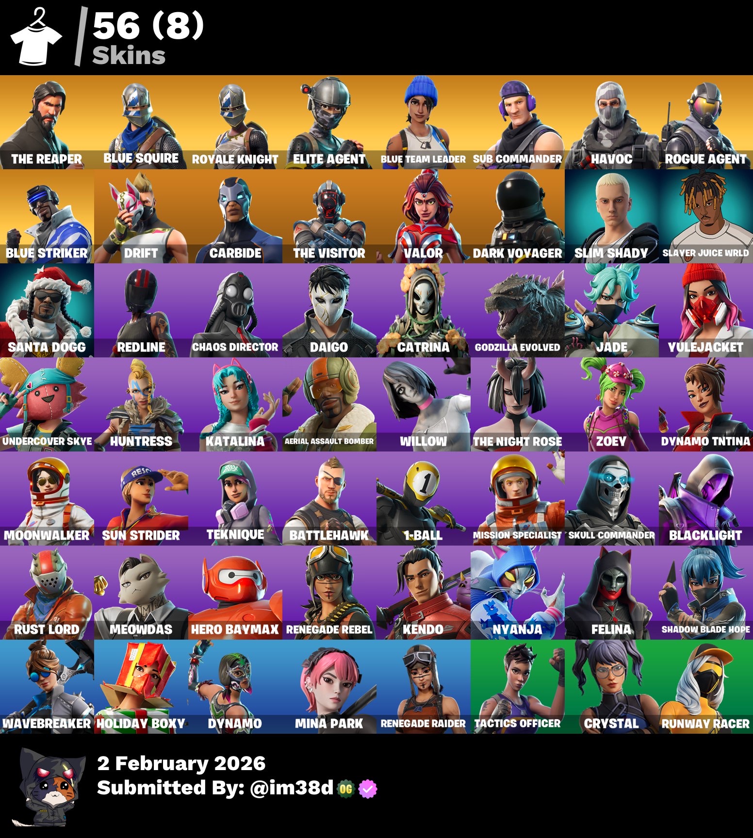 حساب فورت فيه 58 سكن وفيه ثلاثه سكنات من السيزن الثالث و سكن واحد من السيزن الرابع وفيه سكنات حلوه و...