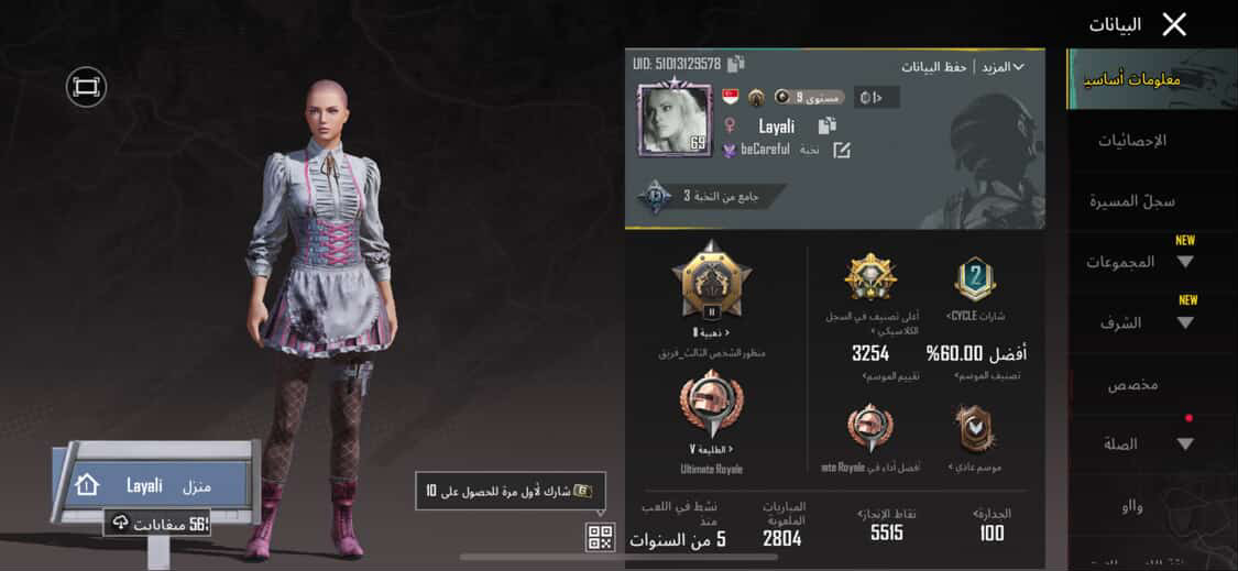 (*حساب ببجي عاالمية*) المستوى ٦٠ المستودع ٤٨ عدد الميثك٦ الخوذات ٥ الشنط ٦ عدد الاسلحه٢٣...
