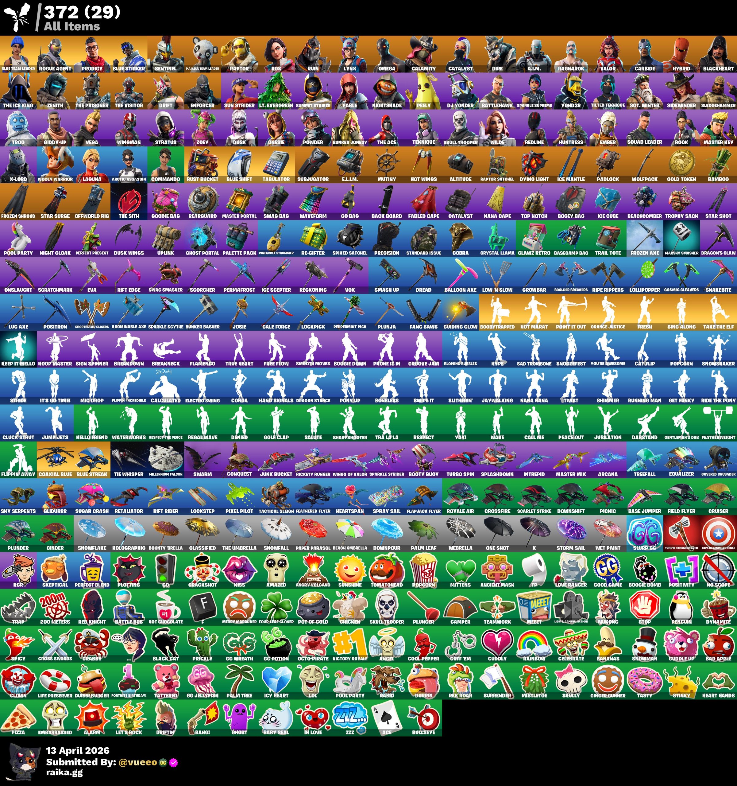 فورت نايت 76 سكن من ضمنها 13 سكن شوب نوادر وفيه رقصات نادره السكنات: 76 حقائب الظهر: 141 الآكسات...