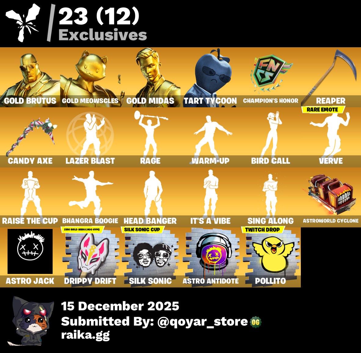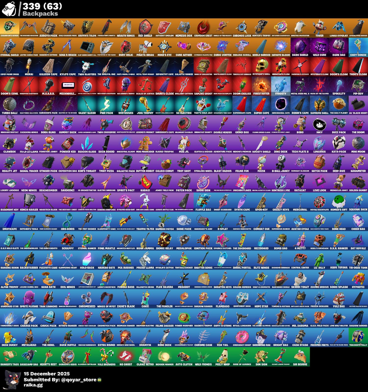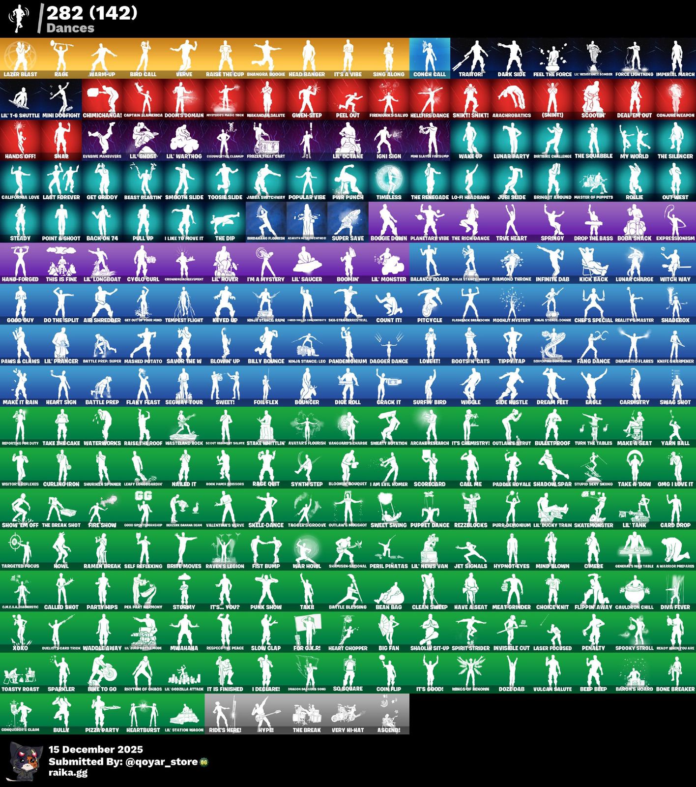 167 سكن + حزم بلس + سكن سنوب دوق السكنات : 167 الحقائب : 234 الاكاسات : 206 الرقصات : 158 ا...