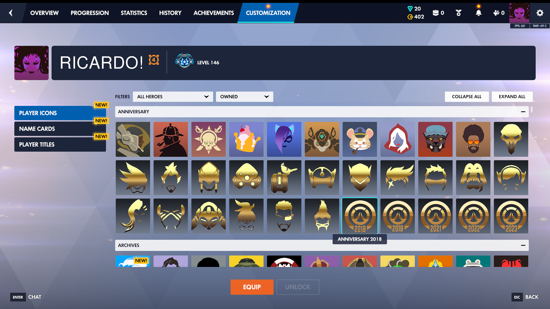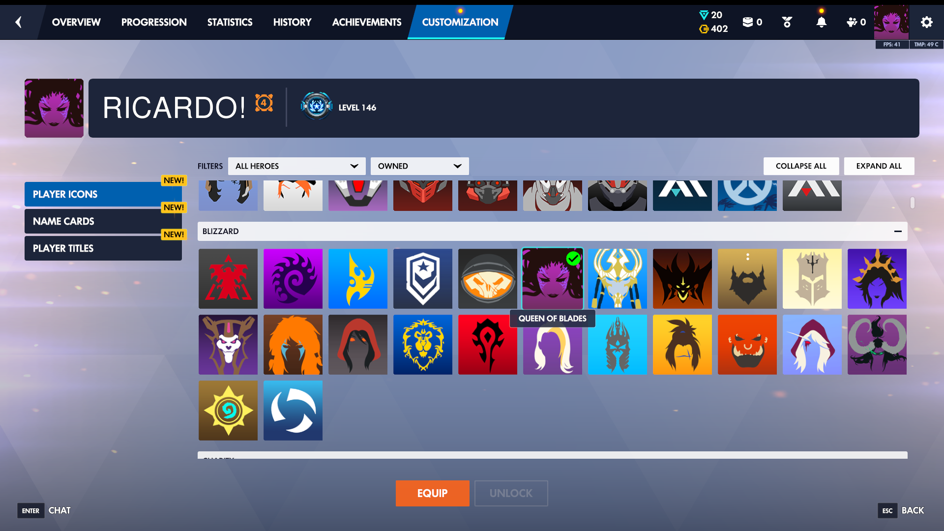 حساب اوفرواتش للبيع اسم مزخرف فيه الافتارات المطلوبه والنادره رانكاته : كونسل Gm4 تانك ( top 42...